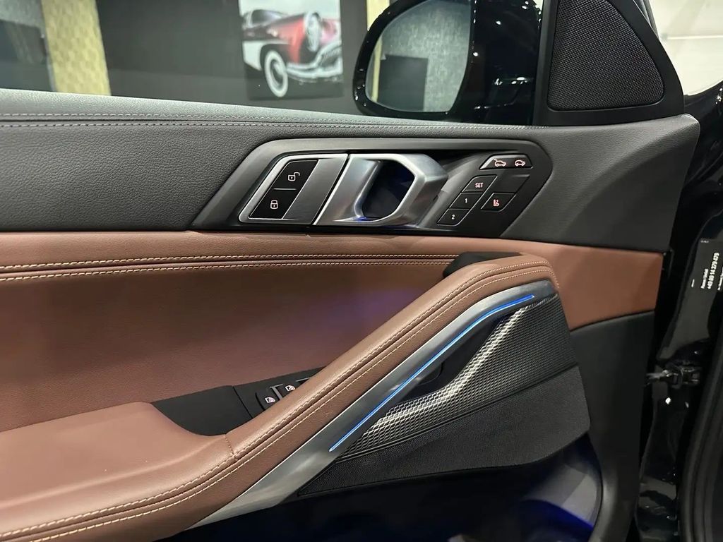 Außenausstattung: Shadow-Line Hochglanz (erweiterter Umfang), DAB-Tuner (Radioempfang digital), Dachreling Hochglanz Shadow-Line, Fzg. ohne Modell-Schriftzug, HiFi-Lautsprechersystem, Induktionsladeschale für Smartphone (Wireless Charging), Innenausstattung: Glas-Applikationen (CraftedClarity) für Bedienelemente, Innenausstattung: Interieurleisten Aluminium Tetragon, Innovations-Paket, Komfortsitze vorn elektr. verstellbar (mit Memory), Kühlergrill beleuchtet (Iconic Glow), LM-Felgen vorn/hinten: 9,5x22 / 10,5x22 (Doppelspeiche 742 M, Jet Black), Metallic-Lackierung, Panoramadach (Glas), Parkassistent-Paket Plus, Scheinwerfer BMW Individual Shadow-Line, Sonnenschutzverglasung (hinten abgedunkelt), Travel und Comfort System
