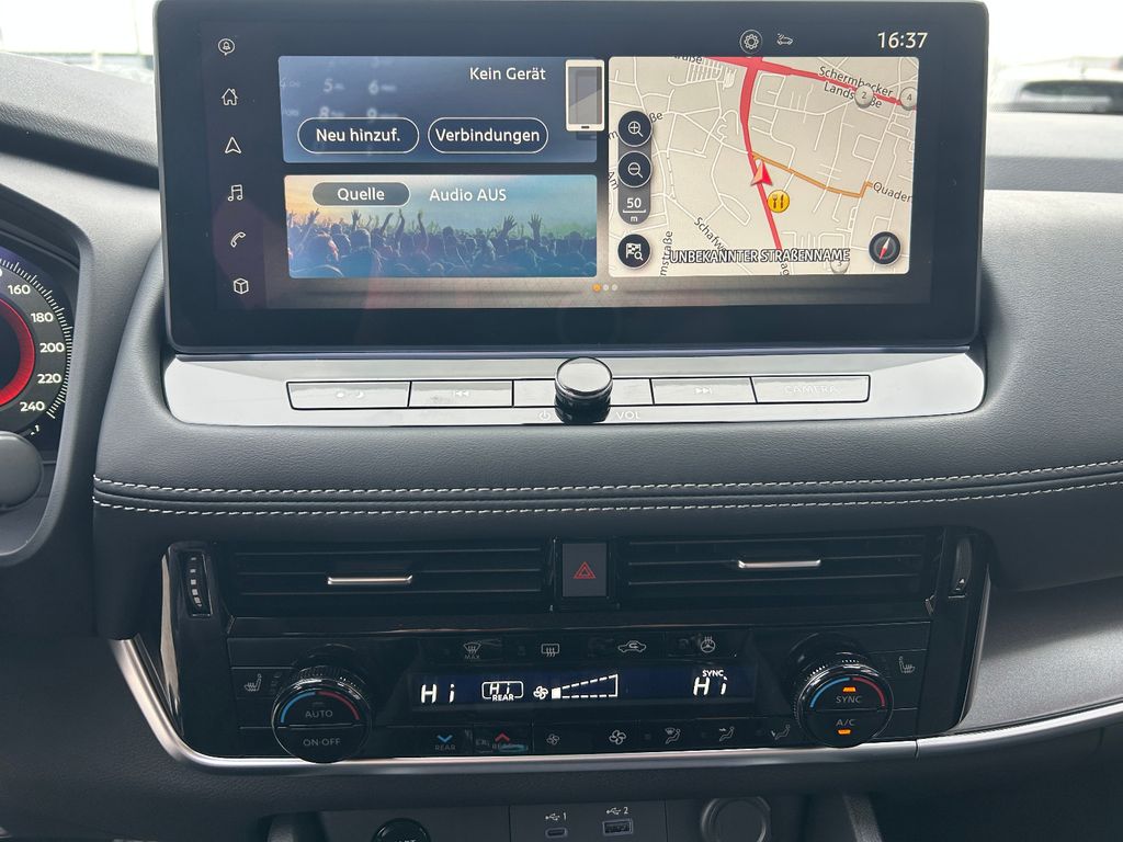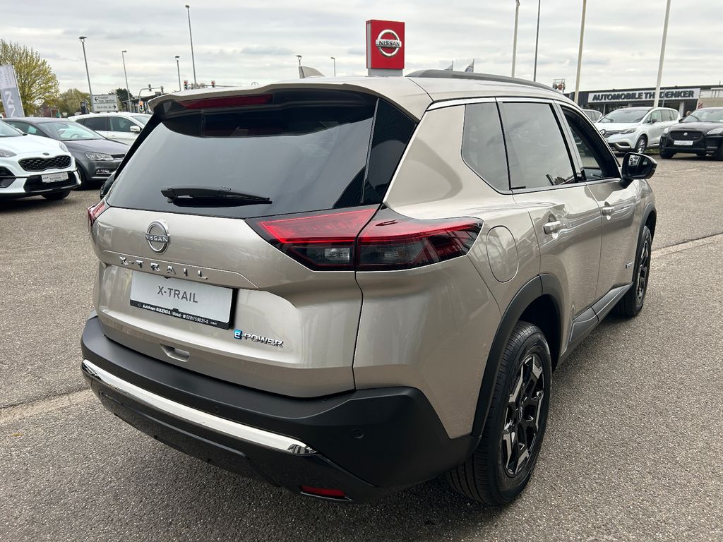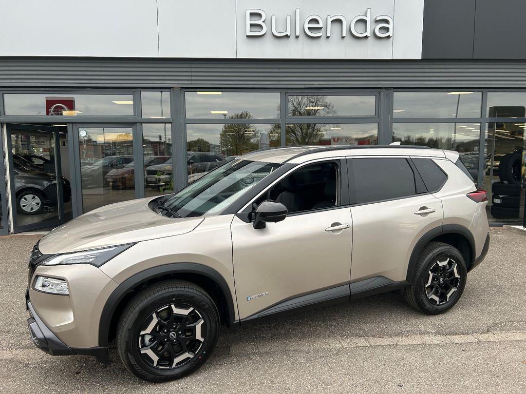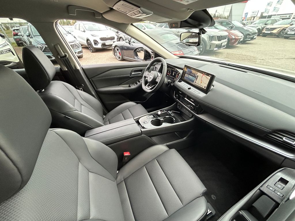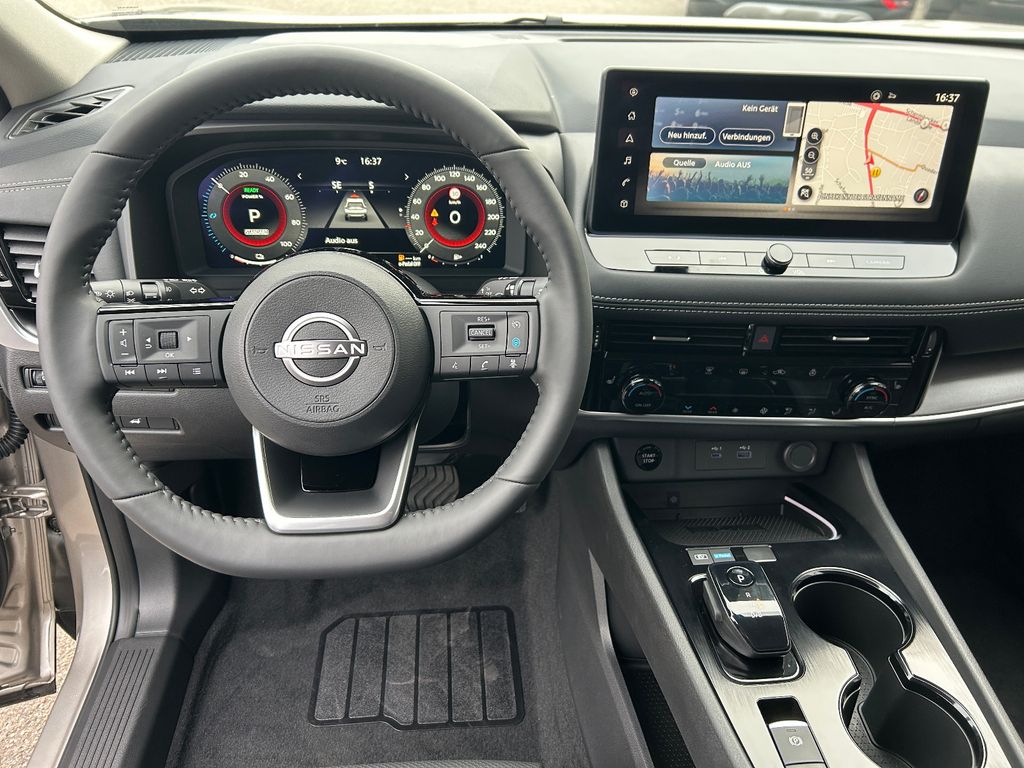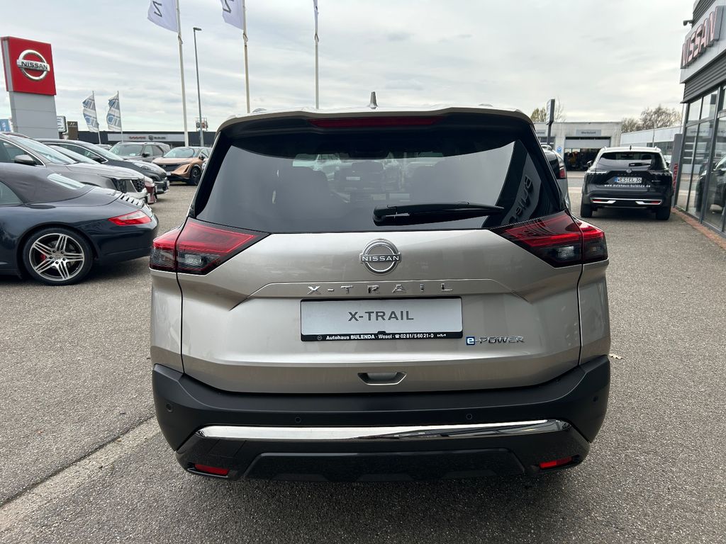 Ablagetasche an Vordersitzlehnen, Airbag Fahrer-/Beifahrerseite, Ambiente-Beleuchtung Mittelkonsole, Ausstattungs-Paket: Nissan Connect Navigationssystem, Auto-Hold-Funktion, Außenspiegel elektr. anklappbar, Außenspiegel elektr. verstell- und heizbar, Dachantenne im Haifischflossen-Design, Dachreling, Einparkhilfe hinten, Einparkhilfe vorn, Elektr. Bremskraftverteilung (EBD), Elektromotor 150 kW (Hybridantrieb), Fahrassistenz-System: aktiver Spurhalteassistent, mit korrigierendem Bremseingriff, Fahrassistenz-System: Auffahrwarnsystem (Forward Collision Warning, FCW), Fahrassistenz-System: Autonomer Notbrems-Assistent, Fahrassistenz-System: Berganfahr-Assistent, Fahrassistenz-System: Müdigkeitserkennungs-Sensor, Fahrassistenz-System: Querverkehrs-Assistent Heck (Rear Cross Traffic Alert, RCTA), Fahrassistenz-System: Sicherheitssystem ERA GLONASS mit automatischem Notruf, Fahrassistenz-System: Totwinkel-Assistent, Fahrassistenz-System: Verkehrszeichenerkennung, Fahrmodusschalter, Familien-Paket, Fensterheber elektrisch vorn + hinten, Gepäck-/Laderaum-Unterteilung (Flexi-Board), Geschwindigkeits-Regelanlage (Tempomat) mit Abstandsregelung, Handschuhfach beleuchtet, Heckleuchten LED, Induktionsladeschale für Smartphone, Innenspiegel mit Abblendautomatik, Instrumentenanzeige TFT-Farbdisplay (12,3 Zoll), Isofix-Aufnahmen für Kindersitz, Karosserie: 5-türig, Keyless-Entry, Kofferraumbeleuchtung, Kopf-Airbag-System, Lenksäule (Lenkrad) höhen-/längsverstellbar, Leseleuchten vorn und hinten, Licht- und Regensensor, LM-Felgen, Metallic-Lackierung, Mittelarmlehne hinten mit Getränkehalter, Mittelkonsole mit Armlehne und Staufach, Motor 1,5 Ltr. - 116 kW (System: 150 kW) Range Extender, Notbrems-Warnblinkautomatik, Otto-Partikelfilter (OPF), Parkbremse elektrisch, Radstand 2705 mm, Reifendruck-Kontrollsystem, Rückfahrkamera, Rücksitzbank verschiebbar, Rücksitzlehne geteilt (40:20:40), Schadstoffarm nach Abgasnorm Euro 6e, Seitenairbag vorn, Seitenairbag vorn mitte (Center-Airbag), Sitz vorn links elektr. verstellbar (mit Memory), Sitz vorn rechts elektr. verstellbar (mit Memory), Sitzbezug / Polsterung: Kunstleder, Sonnenblenden mit Spiegel (beleuchtet), Start-Stop-Knopf, Steckdose (12V-Anschluß) im Koffer-/Laderaum, Steckdose (12V-Anschluß) in Mittelkonsole, USB-Anschluss im Fond, Verglasung hinten abgedunkelt, Verzurrösen im Koffer-/Laderaumboden, Warnanlage für Sicherheitsgurte vorn und hinten, Sitze: Top-Sportsitze vorn, Innenspiegel automatisch abblendend