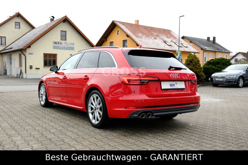 Dieser gepflegte Audi A4 Avant aus 2017 präsentiert sich in attraktivem Rot mit Metallic-Effekt und schwarzem Teilleder/Alcantara-Interieur. Mit nur zwei Vorbesitzern und penibel geführter Servicehistorie bietet dieser Allrad-Diesel zuverlässige Leistung von 190 PS.
