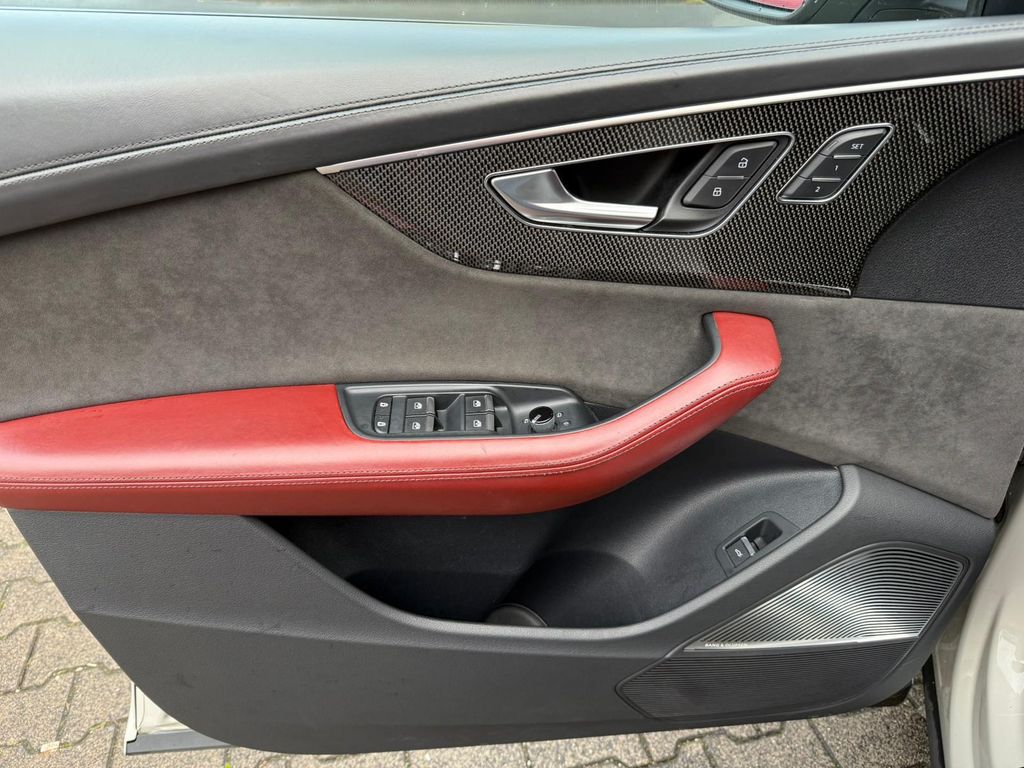 Sonderausstattung:Adaptive Scheibenwischer, beheizt, Assistenz-Paket plus, Audi music interface im Fond, Audi Ringe und Schriftzüge schwarz glänzend, Audi Smartphone Interface, Ausstattungs-Paket: Technology Selection, Außenspiegel elektr. verstell-, heiz- und anklappbar, mit Abblendautomatik und Memory, Bremssättel Rot lackiert, Carbon-Style-Paket, Dachreling schwarz, Diebstahlsicherung für Räder (Felgenschlösser), Doppel-Sonnenblenden (verschiebbar, ausziehbar), Einstiegsleuchten LED mit Projektionsfunktion, Fahrassistenz-System: Insassen-Schutzsystem (Audi pre sense Fond), Fahrwerks-Paket: Advanced, Frontscheibe Klimakomfort / Akustikglas, heizbar, HD Matrix-LED-Scheinwerfer, Innenausstattung: Dekoreinlagen Carbon, Innenausstattung: erweiterte Interieurelemente in Leder, Komfortschlüssel mit sensorgesteuerter Heckklappenentriegelung und Diebstahl-Warnanlage inkl. (öffnen + schliessen), Kontur / Ambientebeleuchtungs-Paket (plus), Lenkrad (Sport/Leder - 3-Speichen, unten abgeflacht) mit Multifunktion und Schaltfunktion, LM-Felgen 10x21 (5-Segmentspeichen, für Winterbereifung), Metallic-Lackierung, Optik-Paket schwarz, Panoramadach vorn elektrisch, hinten fest, Reifendruck-Kontrollsystem, Rücksitzlehne geteilt/klappbar, verschiebbar (40:20:40), S Sportsitze plus vorn, Sender für Garagentoröffner (integriert), Sitzbelüftung und Massagefunktion vorn, Sitzbezug / Polsterung: Leder Valcona mit Rautensteppung, Sitze vorn elektr. verstellbar (mit Memory), Sound-System Bang & Olufsen Advanced, Verglasung hinten abgedunkelt (Privacyverglasung)