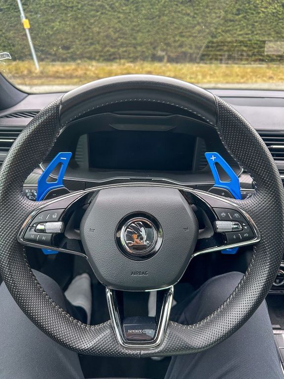 Zusätzlich zum Fahrzeug werden die Winterräder mitgegeben, die derzeit außerhalb der Saison als Abstellräder genutzt werden und voraussichtlich auch nur noch dafür geeignet sind. Die originalen Skoda Alufelgen selbst befinden sich jedoch in einem guten Zustand. Außerdem ist die originale Downpipe noch vorhanden und wird ebenfalls beigelegt. Des Weiteren gehören das Stellwerkzeug für das Gewindefahrwerk sowie blaue Scheinwerfercover zum Angebot, die optisch auf die blauen Bremssättel und Schaltwippen abgestimmt sind.