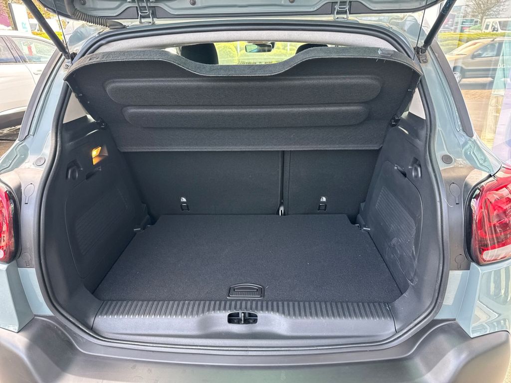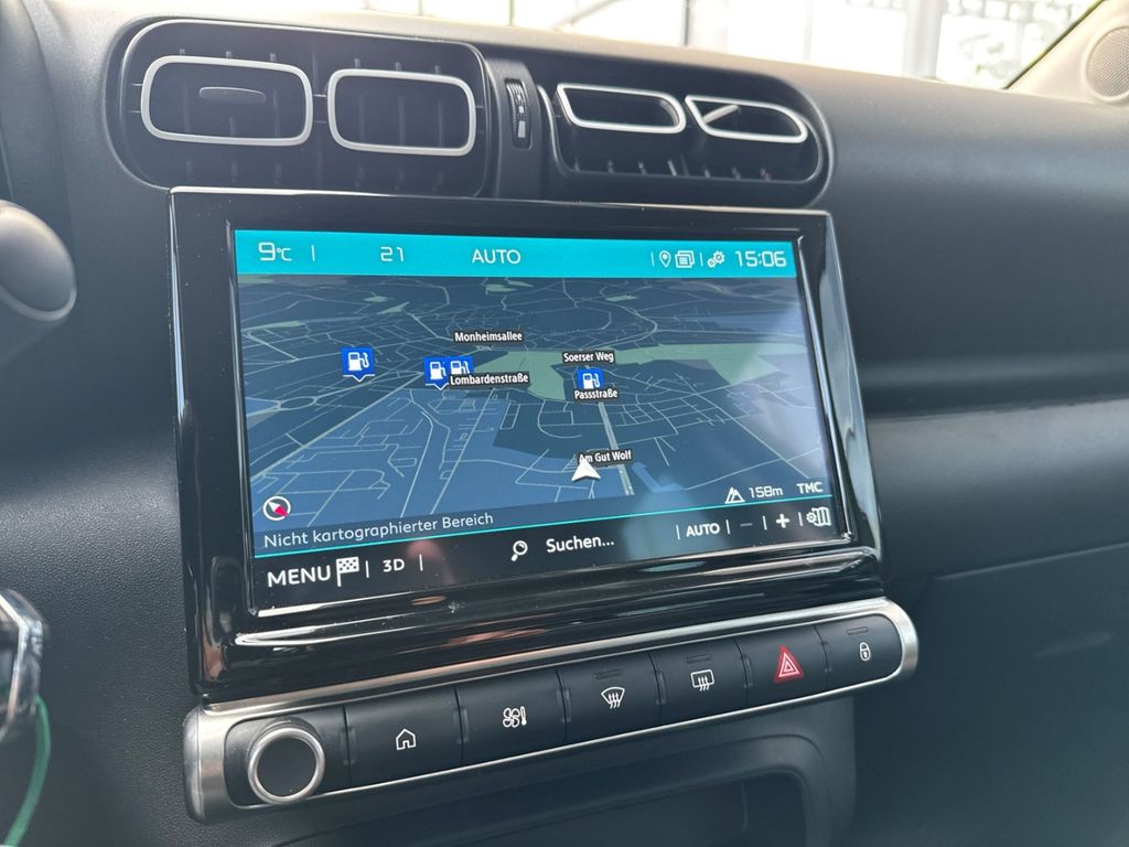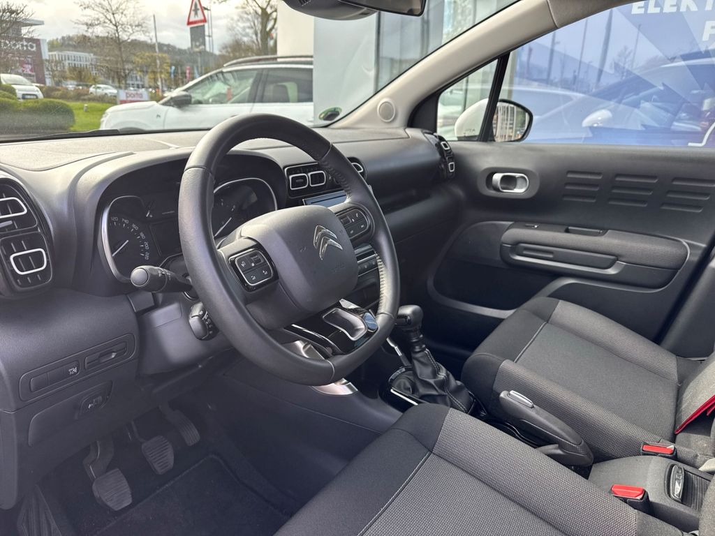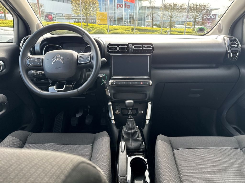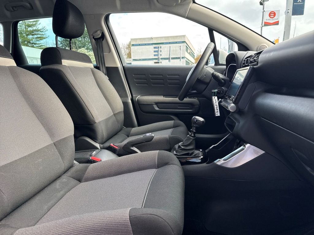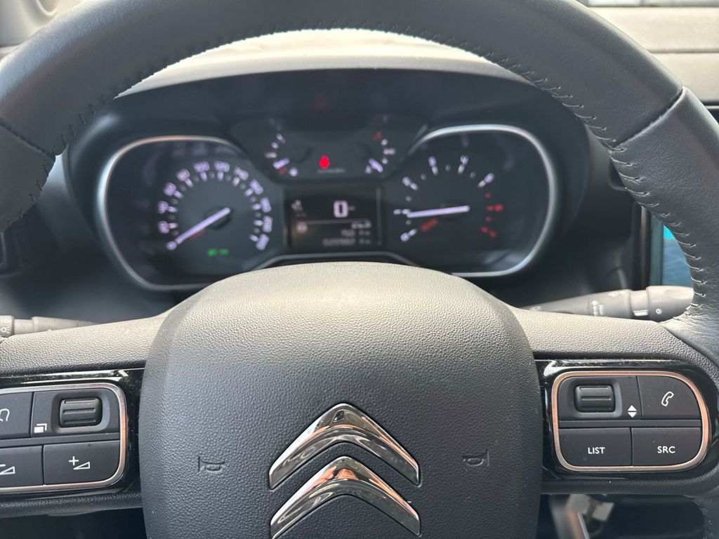 - Weiteres: BORDCOMPUTER, Reifendruck-Kontrollsystem, Sitzbezug / Polsterung: Stoff, Scheibenwischer mit Regensensor, Einparkhilfe hinten, Isofix-Aufnahmen für Kindersitz an Rücksitz, Reifen-Reparaturkit, Getriebe 6-Gang, Rücksitzbank klappbar 1/3-2/3, Seitenscheiben hinten und Heckscheibe dunkel getönt, Mittelarmlehne für Fahrersitz, Dachreling schwarz, Schadstoffarm nach Abgasnorm Euro 6d, Audiosystem: Radio mit CD-Player inkl. MP3-/WMA-Wiedergabefunktion Digitalradio DAB und DAB+ (Tri-Tuner), Rückfahrkamera mit Top Rear Vision und CITROEN Connect Nav, LM-Felgen 6,5x17 (Origami, schwarz), Airbag Fahrer-/Beifahrerseite, Anti-Blockier-System (ABS), Tagfahrlicht LED, Fensterheber elektrisch vorn, Seitenairbag vorn, Servolenkung, Kopf-Airbag-System hinten, Kopf-Airbag-System, Antischlupfregelung (ASR), Außenspiegel elektr. verstellbar, Otto-Partikelfilter (GPF), Außenspiegel anklappbar, beide, Antriebsart: Frontantrieb, Aufmerksamkeits-Assistent (Müdigkeitserkennungs-Sensor), Außenspiegel elektr. anklappbar, Beifahrerairbag abschaltbar, Berganfahrhilfe, Dach andersfarbig, Einschaltautomatik für Fahrlicht, Elektron. Stabilitäts-Programm, Fensterheber elektrisch vorn und hinten, Freisprechanlage Bluetooth, Geschwindigkeits-Begrenzeranlage, Klimaautomatik, Lederlenkrad, Lenksäule höhen-/längsverstellbar, Mobile Online Dienste MirrorLink, Motor 1,2 Ltr. - 81 kW 12V e-THP / PureTech, Nebelscheinwerfer mit statischem Abbiegelicht, Sitzhöhenverstellung Fahrersitz, Spurassistent (AFIL), Stop-Start-Anlage, Style-Paket Weiß, Verkehrszeichenerkennung, ZV mit Fernbedienung