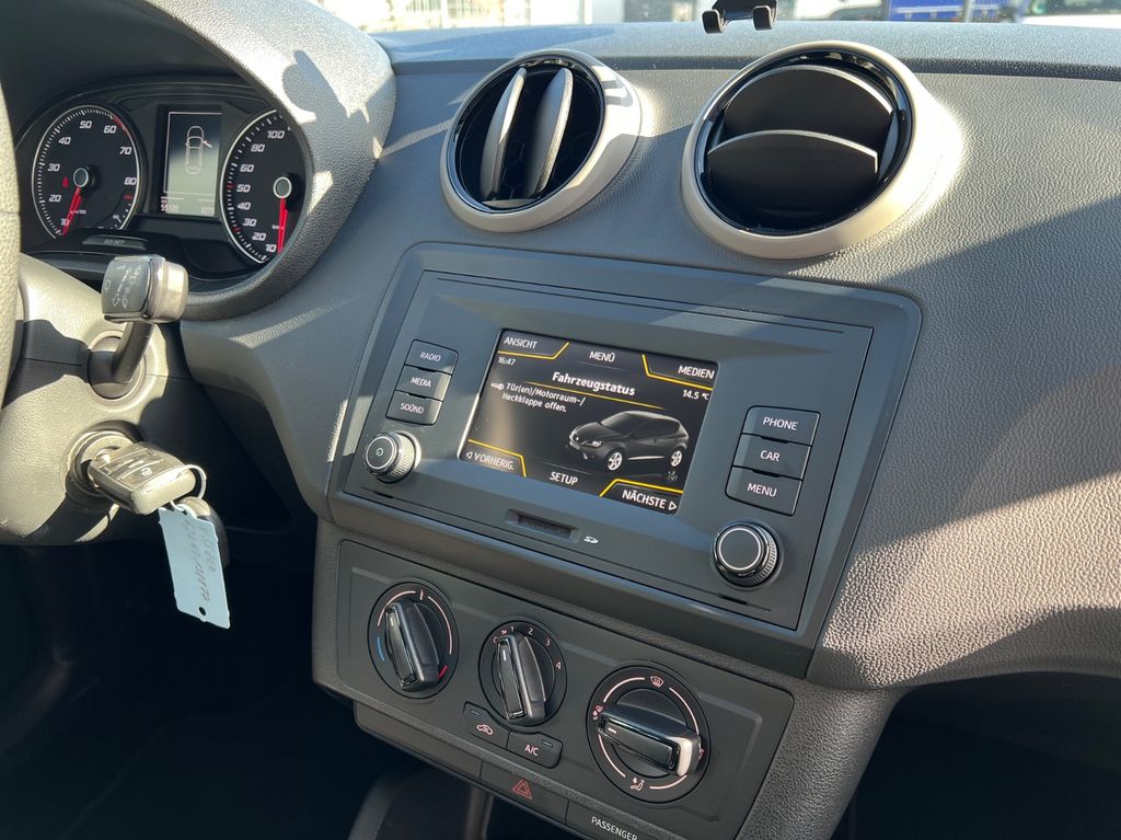 3-Punkt-Sicherheitsgurt hinten mitte, 3. Bremsleuchte, Airbag Beifahrerseite abschaltbar, Airbag Fahrer-/Beifahrerseite, Antriebs-Schlupfregelung (ASR), Außenspiegel konvex, links, Außenspiegel und Türgriffe außen schwarz, Außentemperaturanzeige, Bremsassistent, Elektr. Bremskraftverteilung, Gepäckraumabdeckung / Rollo, Heckscheibe heizbar, Innenraumfilter: Pollenfilter, Isofix-Aufnahmen für Kindersitz, Karosserie: 5-türig, Kofferraumbeleuchtung, Kopfstützen hinten, Kopfstützen vorn verstellbar, Kühlergrill schwarz, Lenksäule (Lenkrad) höhenverstellbar, Motor 1,2 Ltr. - 66 kW TSI, Reifen-Reparaturset, Reifenkontroll-Anzeige, Rücksitzlehne klappbar, Schadstoffarm nach Abgasnorm Euro 6, SEAT Media-System Touch, Seitenairbag, Sitz vorn links höhenverstellbar, Steckdose (12V-Anschluß) vorn