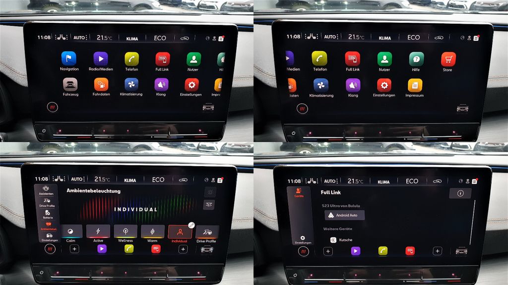 - LED-Innenlicht-Paket: Handschuhfach, Fußraum, Ablage und Multicolor-Ambientebeleuchtung umlaufend