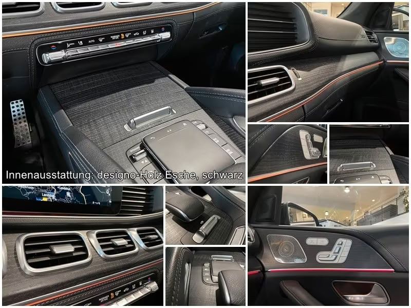 Polsterung: 801 Leder Nappa / Leder schwarz MANUFAKTUR Holz Esche geriegelt schwarz offenporig Instrumententafel und Bordkanten der Türen in Ledernachbildung Artico Edelstahlpedale Sportdesign Sportsitze vorn Lenkrad (Leder Nappa, unten abgeflacht) mit Multifunktion und Schaltfunktion Doppel-Sonnenblenden (ausziehbar, schwenkbar) Getränkehalter mit Kühlfunktion / Wärmefunktion Head-up-Display Innenhimmel designo Dinamica Keyless-Go Startanlage und Zentralverriegelung Klimaautomatik (Thermotronik) Sitz vorn rechts elektr. verstellbar (mit Memory) Sitz vorn links elektr. verstellbar (mit Memory) Sitze vorn: Klimatisierung (Sitzbelüftung) Sitzheizung Plus vorn + hinten Sonnenschutzrollo an Türscheiben hinten Steckdose 230V Armlehnenheizung für Fahrer und Beifahrer Ambiente-Beleuchtung Kombiinstrument mit Variabler Anzeige (Widescreen Cockpit) Innenspiegel mit Abblendautomatik