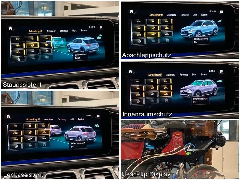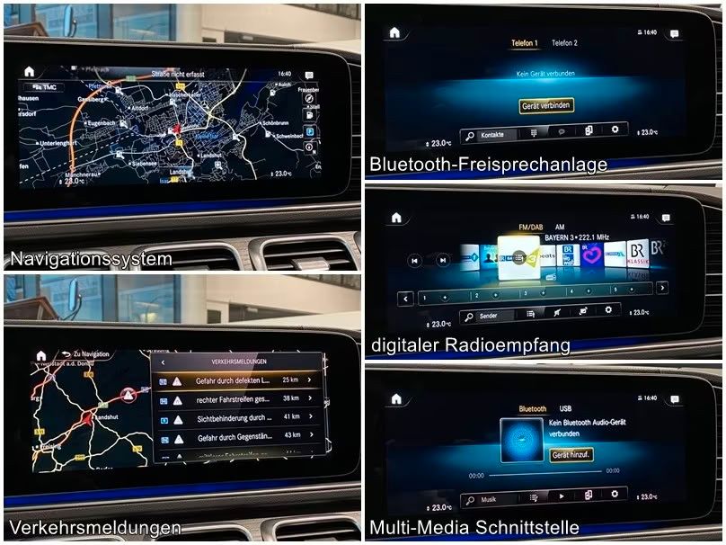 Navigationssystem Premium MBUX Service-System: Erweiterte Navigationsdienste DAB-Tuner (Radioempfang digital) Kommunikationsmodul (LTE) Vorbereitung Mercedes me connect Smartphone Integration (Apple CarPlay & Android Auto) Sprachbediensystem Erweiterte Funktionen (MBUX) USB-Anschlüsse Multifunktions-Telefonie Service-System: MBUX Interieur-Assistent (Gestensteuerung berührungslos) Surround-System Burmester