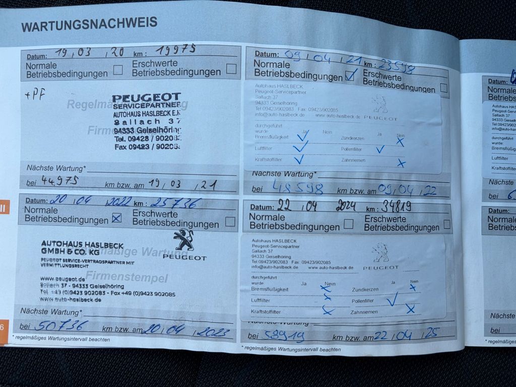 5. Service bei 25.736 Kilometerstnad am 20.04.2022 bei Peugeot