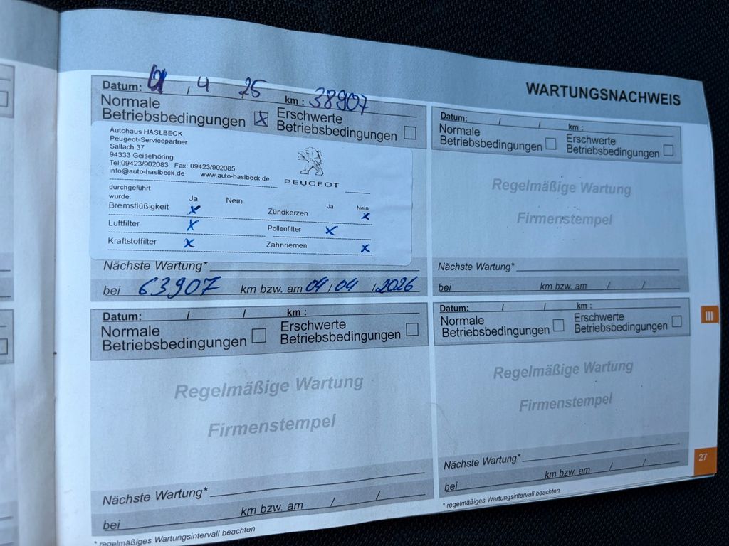 7. Service bei 38.907 Kilometerstnad am 01.04.2025 bei Peugeot