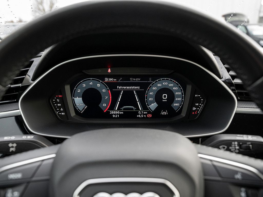 Audi pre sense front, Spurassistent, Spurwechselassistent, Einparkhilfe plus, Geschwindigkeitsbegrenzer, Berganfahrassistent, Lichtsensor, Regensensor, Audi connect Notruf, Multifunktionskamera.