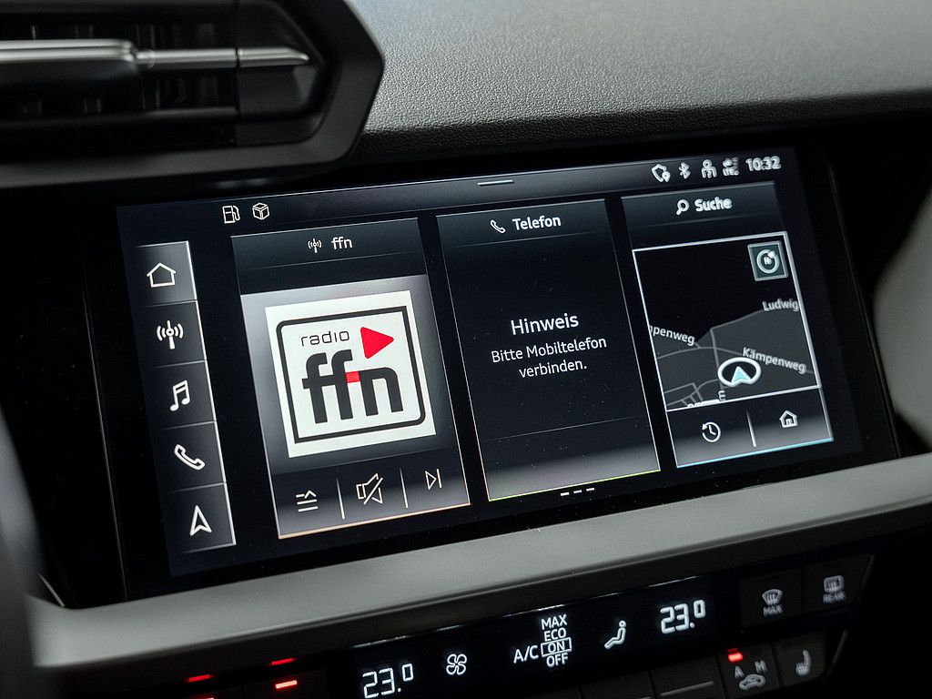 MMI Navigation plus mit MMI touch, 3D-Kartendarstellung, Touchscreen-Display, Audi connect Navigation & Infotainment, MMI Radio Plus, Audiosystem MP3-fähig, DAB Tuner, iPod®/iPhone®/Android Schnittstelle, USB-Schnittstelle/Anschluss, Bluetooth Schnittstelle, Freisprecheinrichtung, Sprachsteuerung-/Bedienung, Telefonvorbereitung mit Bluetooth, Apple Car Play / Vorbereitung, Audi connect, Android Auto / Vorbereitung, Audi connect plus, Audi smartphone interface.