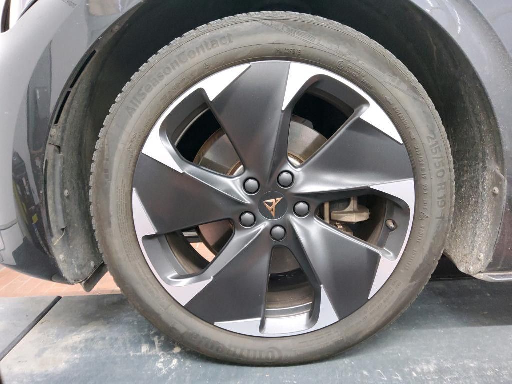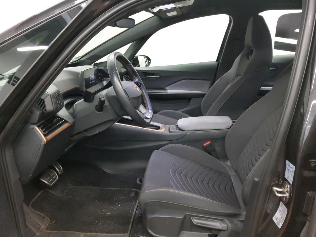 5 Lautsprecher, Airbag Beifahrerseite abschaltbar, Airbag Fahrer-/Beifahrerseite, Akustischer Fußgängerschutz, Außensound (e-sound / AVAS), Ambiente-Beleuchtung LED, Antriebs-Schlupfregelung (ASR), Audiosystem mit Touchscreen-Farbdisplay, Außenspiegel elektr. verstell-, heiz- und anklappbar mit Spiegelabsenkung und Welcome Light, Blinkleuchten LED in Außenspiegel integriert, Bluetooth-Schnittstelle mit Freisprecheinrichtung integriert, Dachhimmel schwarz, Einparkhilfe vorn und hinten, Elektromotor 150 kW (cont. 70 kW), Fahrassistenz-System: Fahrprofilauswahl (CUPRA Drive Profile), Fensterheber elektrisch vorn + hinten mit Komfortschaltung, Fußraumbeleuchtung LED, Geschwindigkeits-Begrenzeranlage, Heckleuchten Voll-LED mit Lichtband (Infinite Light), Heckspoiler Wagenfarbe (Dachspoiler), HV-Batterie 62 kWh brutto / 58 kWh netto, Innenspiegel mit Abblendautomatik, Isofix-Aufnahmen für Kindersitz an Beifahrersitz und Rücksitz (inkl. i-Size-Kindersitze), Karosserie: 5-türig, Klimaanlage Climatronic 2-Zonen, Kombiinstrument digital (virtual cockpit), Kopf-Airbag-System, Ladekabel mit Typ 2-Stecker (Mode 3), Notrufsystem, Parkbremse elektrisch, Pedale Aluminium-Design, Rücksitzlehne geteilt/klappbar (1/3-2/3), Schnellladevorrichtung (CCS-Ladedose), Schriftzug auf der Heckklappe, Seitenairbag, Seitenairbag vorn mitte (Central Airbag), Sitz vorn links höhenverstellbar, Sitzbezug / Polsterung: Stoff, Sonnenblende links mit Spiegel (beleuchtet), Sonnenblende rechts mit Spiegel (beleuchtet), Sport-Schalensitze vorn mit integrierten Kopfstützen, USB-Ladeanschlüsse (2-fach, Typ C) für 2.Sitzreihe, Warnanlage für Sicherheitsgurt-System, Wärmeschutzverglasung