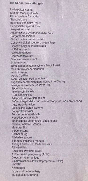 Angeboten wird ein Passat 2.0 TDI SCR 140kW DSG 4M Highl. Variant.Es handelt sich um ein sehr gepflegtes Auto mit noch laufendem Servicevertrag und dadurch vollständiger Historie mit Werkstattaufenthalten in VW-Vertragswerkstätten. Das Fahrzeug hat nahezu Vollausstattung - die Ausstattungsliste vom Kauf beim Autohaus ist in den Fotos ersichtlich. Das Auto ist 8-fach bereift mit Alufelgen.