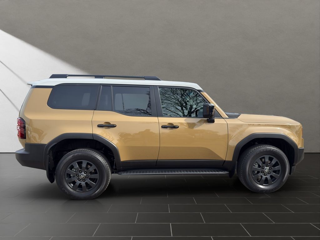 Zum Verkauf steht ein Toyota Land Cruiser First Edition aus 2024 in der begehrten Farbe Sand Metallic mit schwarzer Lederausstattung.
