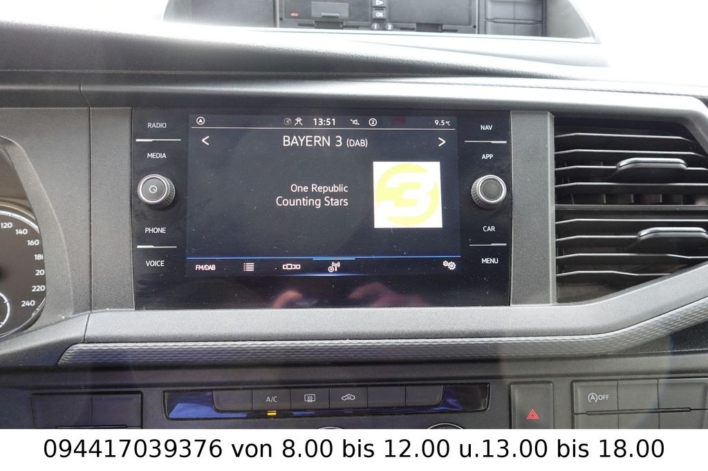 Sonderausstattung:2. Batterie, Armaturentafel mit Zusatzkonsole, Audio-Navigationssystem Discover Media Streaming & Internet (Touchscreen, USB), Ausstattungs-Paket Licht + Sicht, Außenspiegel elektr. verstell-, heiz- und anklappbar, Befestigungsschienen für Dachträger, Elektrische Schnittstelle für externe Nutzung (CAN-Datenbus) mit Anschlussklemme, Fahrassistenz-System: Fernlichtregulierung (Light Assist), Fahrassistenz-System: Spurhalteassistent (Lane Assist), Fahrassistenz-System: Umfeldbeobachtungssystem (Front Assist) mit City-Notbremsfunktion, Fahrtenschreiber digital, Fußmatten Fahrerhaus: Gummi, Fzg. ohne Kindersicherung im Lade-/Fahrgastraum, Handschuhfach beleuchtet, Heckflügeltüren mit Verglasung, Heckscheibe heizbar, mit Wischanlage, Laderaumtrennwand hoch mit Fenster feststehend, LKW-Zulassung, Multifunktionsanzeige Plus, Notrufsystem, Raucher-Paket, Reifendruck-Kontrollsystem, Reserverad in Fahrbereifung, Rückfahrkamera, Scheibenwaschdüsen beheizt und Anzeige für Waschwasserstand, Schriftzug Transporter am Kotflügel, Seitenairbag / Kopfairbag (Curtain-Airbag) vorn, Sitze im Fahrerhaus: Beifahrerdoppelsitz mit Staufach (abschließbar) im Sitzkasten, Sitze im Fahrerhaus: Fahrersitz höhenverstellbar, Sitze im Fahrerhaus: Lendenwirbelstütze Fahrersitz, Verkleidung im Lade-/FG-Raum: Hartfaser halbhoch, Verzurrösen verstärkt, Zul. Gesamtgewicht 3,20 t (inkl. Stahlfelgen 16" verstärkt)