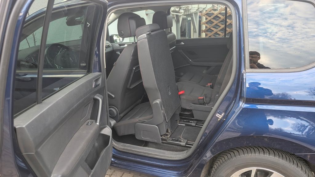 Da uns der Touran treu im Familienalltag begleitet hat, gibt es ehrliche Gebrauchsspuren: Ein paar Steinschläge sowie kleinere Kratzer im Bereich der Ladekante, am vorderen Stoßfänger und an den Einstiegen (durch die Sicherheitsgurte). Nichts davon beeinträchtigt die Funktion – es ist ein ehrliches Fahrzeug, das sofort einsatzbereit ist.