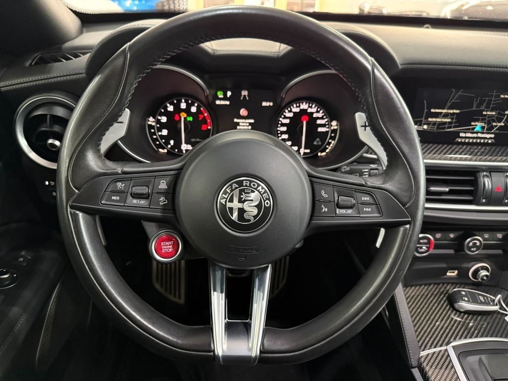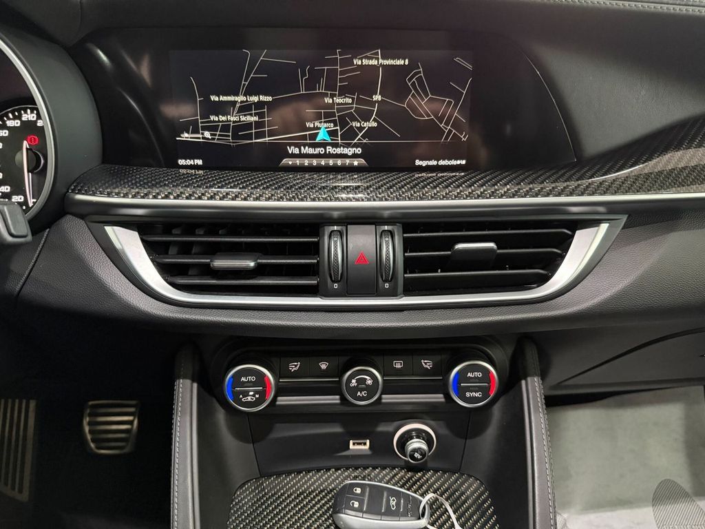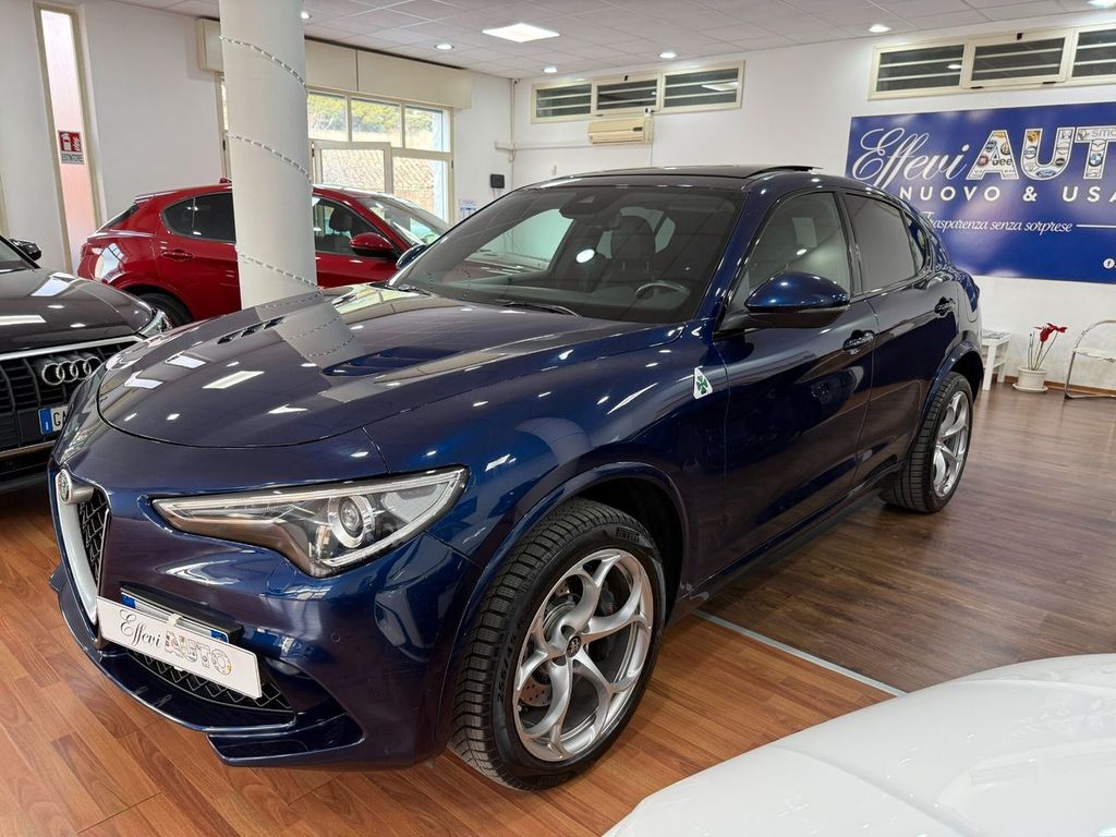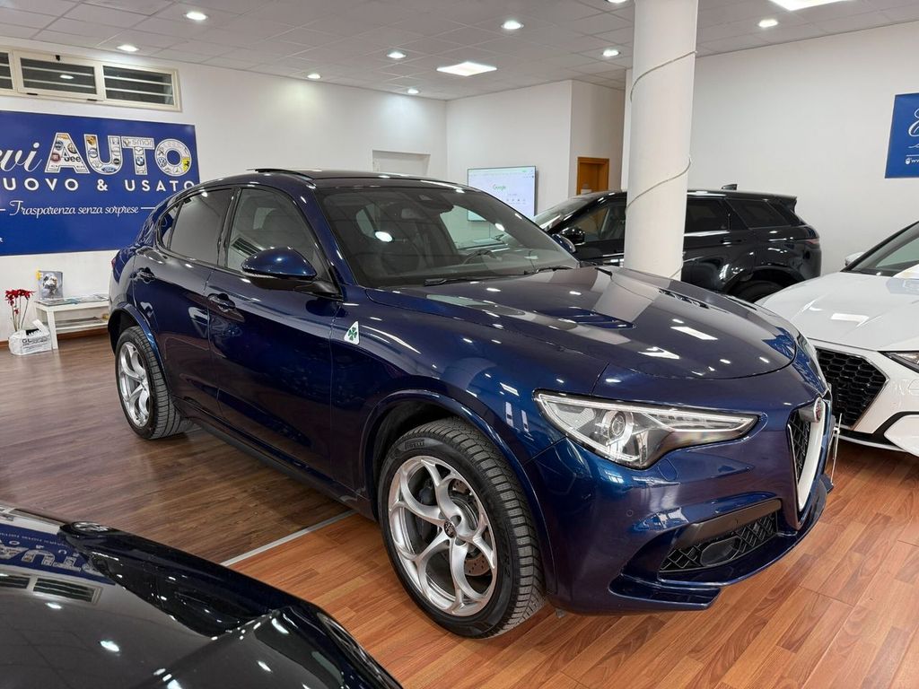 Motore 2.9L V6 Bi-Turbo benzina da 375 kW (510 CV) e 600 Nm di coppia, derivazione da tecnologie Ferrari, airbag lat., airbag lato guida / lato passeggero airbag lato passeggero disinseribile, aiuto parcheggio elettronico ant. e post., Allestimento int.: interni Scuro, Montante tetto e padiglione in Nero, Allestimento int.: modanature int. carbonio, Allestimento int.: telaio il plancia cruscotto e pannello porta in Look Carbon, alloggiamenti Isofix per sedile bambini, alzacristalli elettr. ant. + post., apertura portellone elettr., assetto attivo con elettronico regolazione ammortizzatore (Active Suspension), Assistente pioggia freni (RBA), attivo Controllo momento sterzata, bracciolo ctr. ant. con vano portaoggetti, calandra ant. Antracite, cambio automatico - (8 rapporti), cerchi in lega antpost.: 9x20 / 10x20 (Classico), chiusura centralizzata con comando a distanza, climatizzatore automatico 2 zone, controllo frenata in curva, differenziale autobloccante (Q2), Electronic Traction Control, elettron. controllo stabilità, elettron. regolatore di frenata, fanali post. led, fanali post. scuri, fendinebbia, sedili: Pelle alcantara, freno di stazionamento elettr., immobilizzatore (elettronico), impianto freni: Brembo, impianto regolazione velocità adattativo, impianto scarico doppio terminale, Infotainment-System: UConnect 3D Nav (schermo a colori 8,8") radioricevitore Digital (DAB), viva voce Bluetooth incl. Audio Streaming, presa AUX-IN, porta USB Keyless-Entry, lampeggiatori led in retrovisore est. integrato, luci stop con Funzione di emergenza, maniglie porta est. Alluminiumlook, modanature sottoporta (alluminio) con Logo, paraurti ant. e post. in Quadrifoglio Design, pedali alluminio, pedali sportivi, piantone sterzo (volante) regolab. (verticale / assiale), pinze freno anodizzato, plancia cruscotto e pannelli porta in pelle, poggiatesta post. pomello leva/selettore cambio alluminio, pomello leva/selettore cambio pelle Perforato, protezione inf. post., regolatore antibloccaggio in decelerazione motore, regolazione antislittamento trazione, retrocamera, retrovisori est. pieghevoli, retrovisore est. con autoanabbagliante, retrovisore est. tinta carrozzeria, riscaldamento sedili ant., scarico sportivo, sedile post. sdoppiat. / ribaltab. (Asimmetrico), sedili sportivi pelle / microfibra / Alcantara, sensore luci e pioggia, servofreno (HBA / EBA) servosterzo (sterzo attivo) Dynamic Steering Torque (DST) sistema airbag testa, sistema anti-inquinamento normativa Euro 6d-TEMP, ABS, Alfa Romeo Sistema di dinamica di movimento D.N.A., assistente abbaglianti, Assistente alla frenata di emergenza indipendente, assistente angolo morto, assistenza partenza in salita, Avviso collisione fr