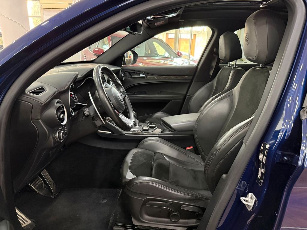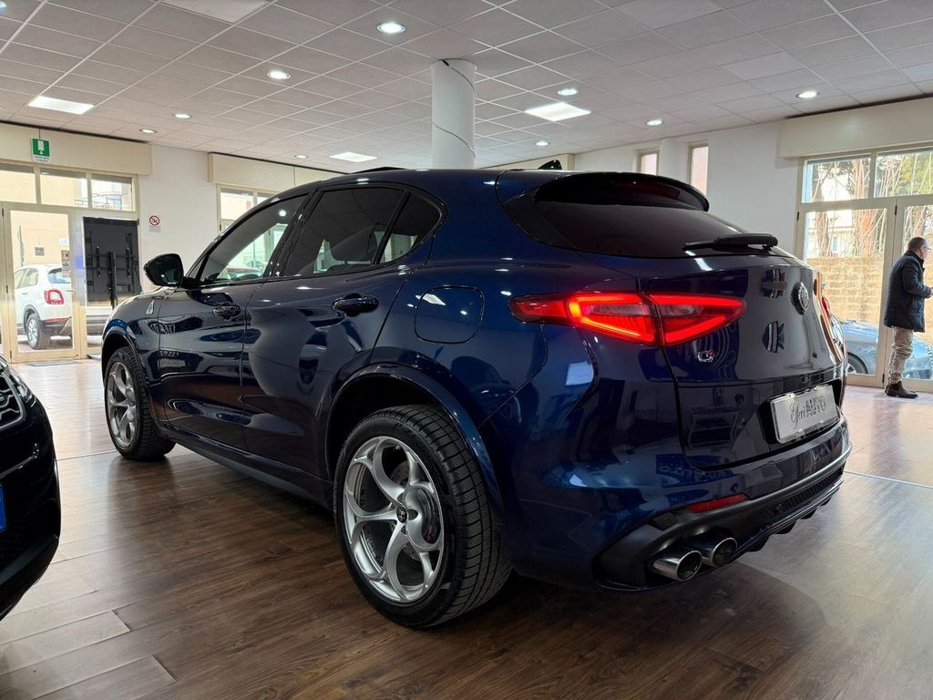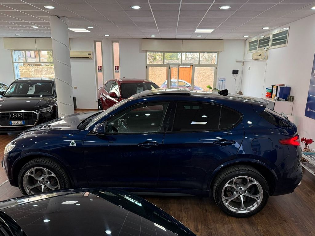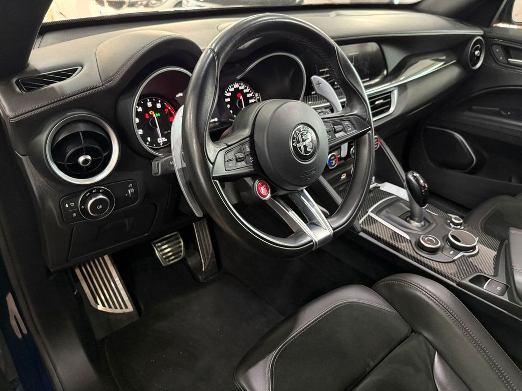 Motore 2.9L V6 Bi-Turbo benzina da 375 kW (510 CV) e 600 Nm di coppia, derivazione da tecnologie Ferrari, airbag lat., airbag lato guida / lato passeggero airbag lato passeggero disinseribile, aiuto parcheggio elettronico ant. e post., Allestimento int.: interni Scuro, Montante tetto e padiglione in Nero, Allestimento int.: modanature int. carbonio, Allestimento int.: telaio il plancia cruscotto e pannello porta in Look Carbon, alloggiamenti Isofix per sedile bambini, alzacristalli elettr. ant. + post., apertura portellone elettr., assetto attivo con elettronico regolazione ammortizzatore (Active Suspension), Assistente pioggia freni (RBA), attivo Controllo momento sterzata, bracciolo ctr. ant. con vano portaoggetti, calandra ant. Antracite, cambio automatico - (8 rapporti), cerchi in lega antpost.: 9x20 / 10x20 (Classico), chiusura centralizzata con comando a distanza, climatizzatore automatico 2 zone, controllo frenata in curva, differenziale autobloccante (Q2), Electronic Traction Control, elettron. controllo stabilità, elettron. regolatore di frenata, fanali post. led, fanali post. scuri, fendinebbia, sedili: Pelle alcantara, freno di stazionamento elettr., immobilizzatore (elettronico), impianto freni: Brembo, impianto regolazione velocità adattativo, impianto scarico doppio terminale, Infotainment-System: UConnect 3D Nav (schermo a colori 8,8") radioricevitore Digital (DAB), viva voce Bluetooth incl. Audio Streaming, presa AUX-IN, porta USB Keyless-Entry, lampeggiatori led in retrovisore est. integrato, luci stop con Funzione di emergenza, maniglie porta est. Alluminiumlook, modanature sottoporta (alluminio) con Logo, paraurti ant. e post. in Quadrifoglio Design, pedali alluminio, pedali sportivi, piantone sterzo (volante) regolab. (verticale / assiale), pinze freno anodizzato, plancia cruscotto e pannelli porta in pelle, poggiatesta post. pomello leva/selettore cambio alluminio, pomello leva/selettore cambio pelle Perforato, protezione inf. post., regolatore antibloccaggio in decelerazione motore, regolazione antislittamento trazione, retrocamera, retrovisori est. pieghevoli, retrovisore est. con autoanabbagliante, retrovisore est. tinta carrozzeria, riscaldamento sedili ant., scarico sportivo, sedile post. sdoppiat. / ribaltab. (Asimmetrico), sedili sportivi pelle / microfibra / Alcantara, sensore luci e pioggia, servofreno (HBA / EBA) servosterzo (sterzo attivo) Dynamic Steering Torque (DST) sistema airbag testa, sistema anti-inquinamento normativa Euro 6d-TEMP, ABS, Alfa Romeo Sistema di dinamica di movimento D.N.A., assistente abbaglianti, Assistente alla frenata di emergenza indipendente, assistente angolo morto, assistenza partenza in salita, Avviso collisione fr