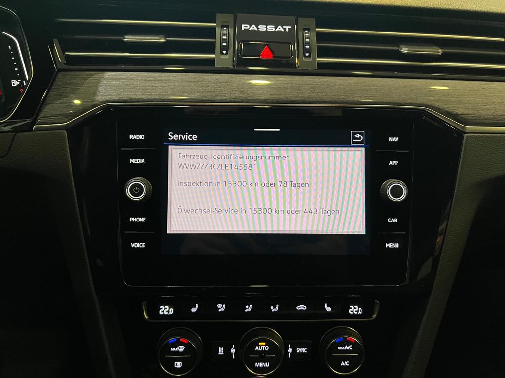 Ausstattung Elegance, Navigationssystem Discover Media Streaming & Internet (Touchscreen, Bluetooth, USB), Matrix-VOLL-LED-Scheinwerfer (IQ.Light) mit Heckleuchten LED, Rückfahrkamera Rear View, Business-Paket Premium mit Navigation, Digital Cockpit (Instrumentenanzeige digital), Fahrassistenz-System: Verkehrszeichenerkennung, Gepäckmanagement-Paket, Kofferraumdeckel / Heckklappe elektr. betätigt (öffnen + schliessen), Mobile Online Dienste We Connect Plus, Sprachsteuerungs-System, Standheizung mit Standlüftung (Fernbedienung und Timer), Verglasung hinten abgedunkelt (65 %), Winter-Paket inkl. Sitzheizung hinten, Außenspiegel elektr. verstell-, heiz- und anklappbar, Anhänger-Stabilisierungs-Programm, Autom. Distanzregelung (ACC inkl. Stop&Go-Funktion), Berganfahr-Assistent, Fußgängererkennung, Multikollisionsbremse (Multi Collision Brake), Müdigkeitserkennung, Spurhalteassistent (Lane Assist), Umfeldbeobachtungssystem (Front assist) mit City-Notbremsfunktion, Klimaautomatik Climatronic 3-Zonen, Mobile Online Dienste Vorbereitung We Connect und We Connect Plus, Mobile Online Dienste We Connect, Radioempfang digital (DAB+), Anhängevorrichtung anklappbar, mit elektrischer Entriegelung, Multifunktionslenkrad in Leder, beheizbar, mit Schaltwippen, Frontscheibe in Verbundsicherheitsglas, drahtlos beheizbar und infrarot-reflektierend, geräuschdämmend, Lechtmetallfelgen 17 Zoll.