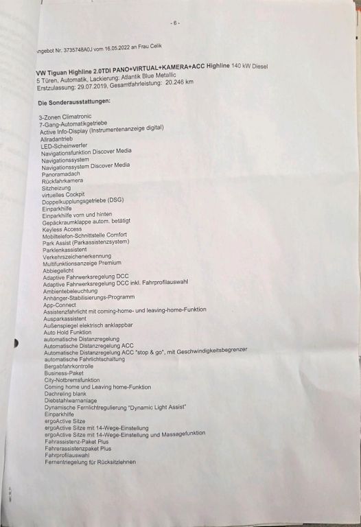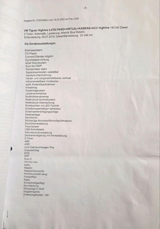 Volkswagen Tiguan 2.0 TDI 193 PS Baujahr 2019 Viele ExtrasWir verkaufen unseren gepflegten VW Tiguan 2.0 TDI mit 193 PS aus dem Baujahr 2019.