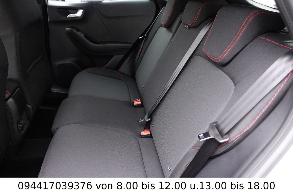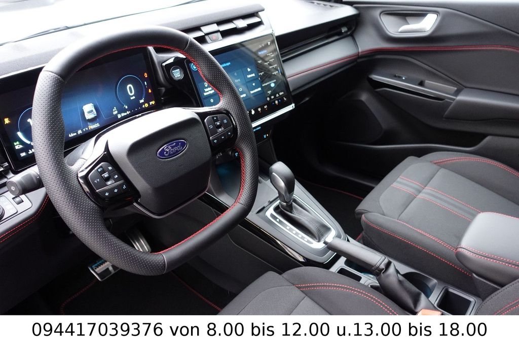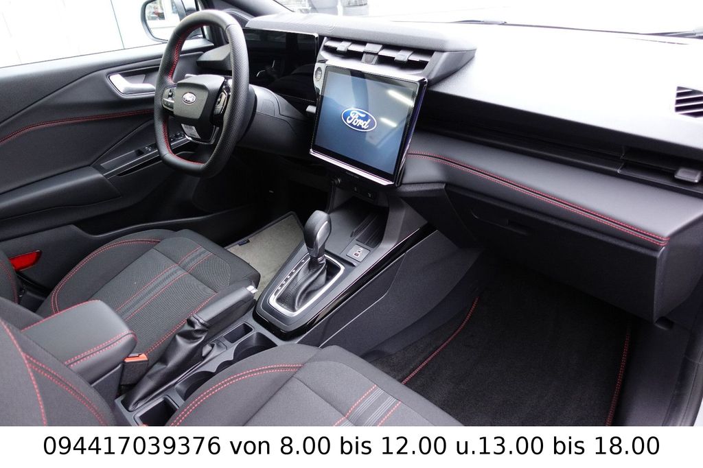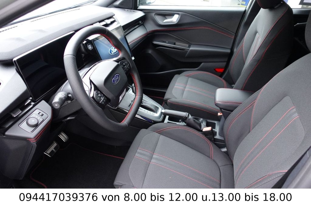 Ambiente-Beleuchtung vorn (LED), Antischlupfregelung (ASR), Audio-Navigationssystem Ford Cloud-Navigationssystem, Audiobedienung am Lenkrad, Außenspiegel elektr. anklappbar, Außenspiegel elektr. verstell- und heizbar, Body-Styling-Paket, Dachhimmel Stoff, dunkel, Eco-Anzeige für verbrauchsoptimiertes Fahren (EcoCoach), Einparkhilfe hinten, Fahrassistenz-System: Berganfahr-Assistent (Hill-Holder), Fahrassistenz-System: Falschfahrer-Warnfunktion, Fahrassistenz-System: Fernlichtassistent (Scheinwerfer mit Abblendautomatik), Fahrassistenz-System: Notbrems-Assistent, Fahrassistenz-System: Post-Collision-System, Fahrassistenz-System: Pre-Collision-System (Kamera-basiert), Fahrassistenz-System: Spurhalteassistent mit Müdigkeitserkennungs-Sensor, Fahrassistenz-System: Verkehrsschildassistent, Farbdisplay für Bordcomputer, Fensterheber elektrisch vorn + hinten mit Komfortschließung, Fußmatten Teppich, Getriebe 7-Gang - Doppelkupplungsgetriebe, Heckleuchten LED, Innenraumfilter: Staub- und Pollenfilter, Innenspiegel mit Abblendautomatik, Intelligent Protection System (IPS), Intelligenter Geschwindigkeits-Begrenzer, Isofix-Aufnahmen für Kindersitz, Karosserie: 5-türig, Klimaautomatik, Kombiinstrument Digitalanzeige 12,3 Zoll, Kopfstützen hinten mechan. verstellbar (3 Stück), Laderaumboden variabel (Ford Megabox), Lendenwirbelstütze Sitz vorn links, Lenkrad (Sport/Leder, ST), Lenksäule (Lenkrad) höhen-/längsverstellbar, LM-Felgen, Mild-Hybrid 92 kW (Motor 1,0 Ltr. - 92 kW EcoBoost), Modellpflege, My Key (2. Fahrzeugschlüssel programmierbar), Nebelscheinwerfer LED, Otto-Partikelfilter (OPF), Pedale Aluminium, Radioempfang digital (DAB), Radstand 2588 mm, Reifen-Reparaturkit, Reifendruck-Kontrollsystem, Rückfahrkamera, Rücksitzlehne geteilt/klappbar (60:40), Schadstoffarm nach Abgasnorm Euro 6d-TEMP, Schadstoffarm nach Abgasnorm Euro 6e, Scheinwerfer LED, Scheinwerfer-Assistent mit Tag-/Nachtsensor, Sitz vorn links höhenverstellbar, Sonnenblende links mit Spiegel (beleuchtet), Sonnenblende rechts mit Spiegel (beleuchtet), Sport-Fahrwerk, Sportsitze vorn, Standard Variante, Start/Stop-Anlage, Türgriffe außen Wagenfarbe