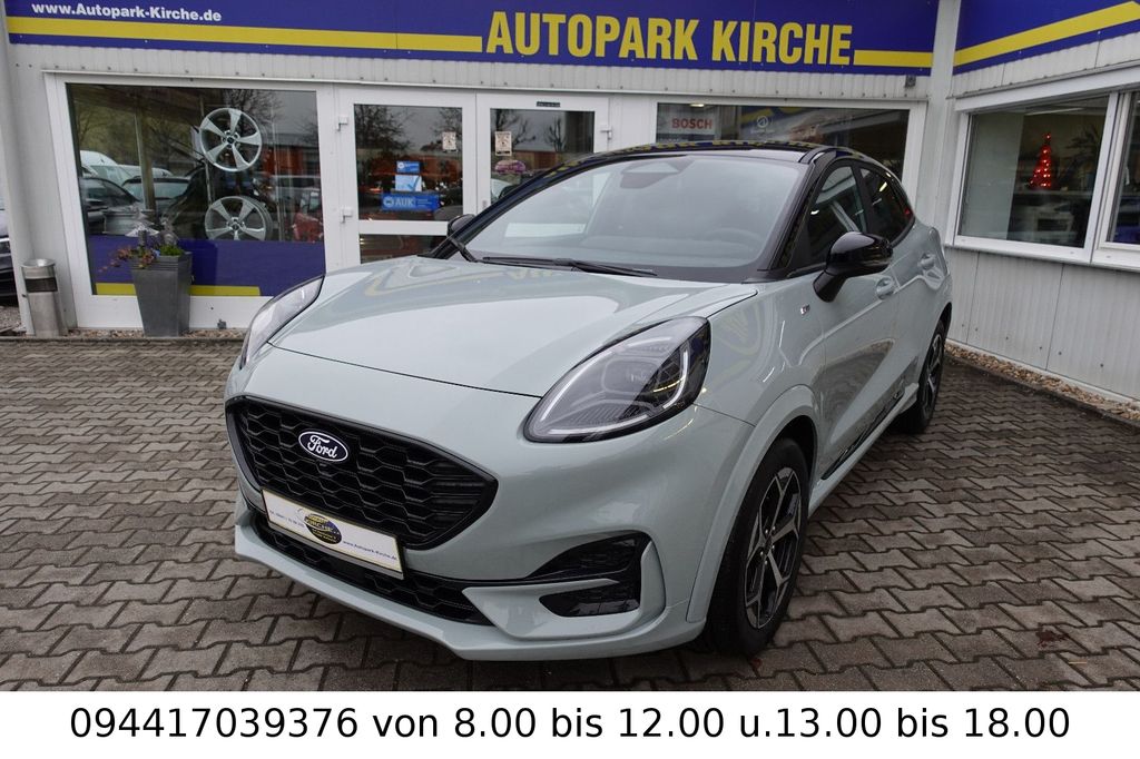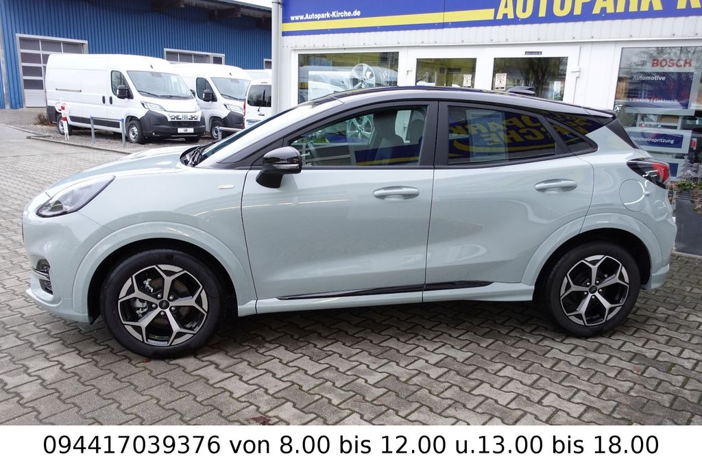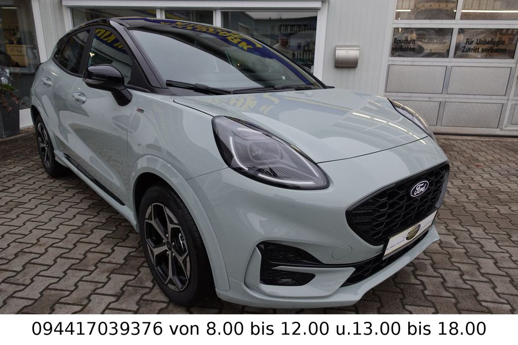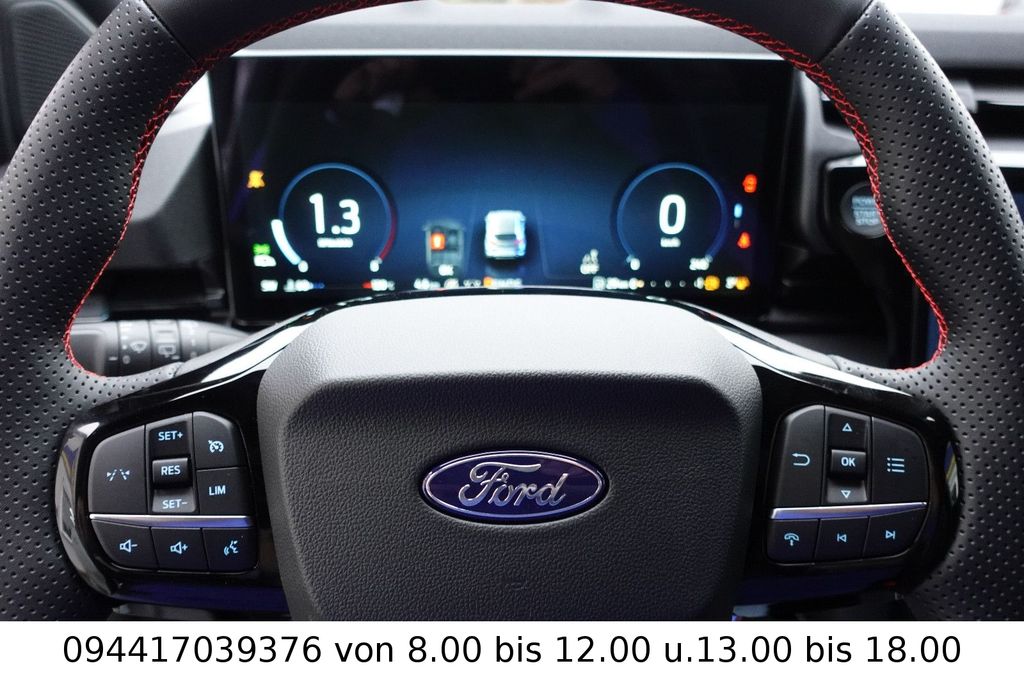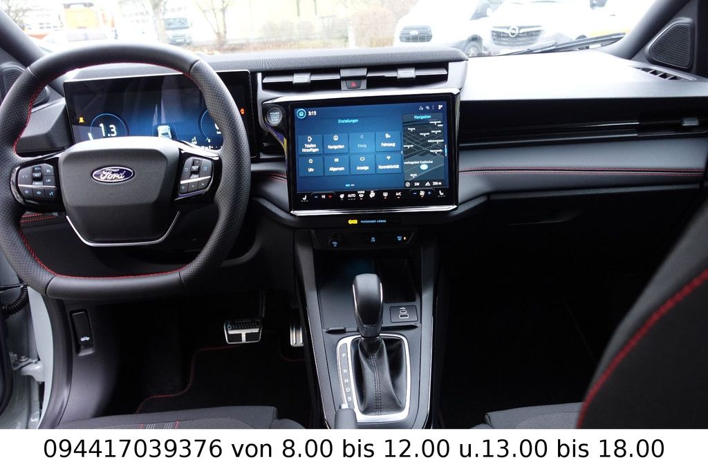 Ambiente-Beleuchtung vorn (LED), Antischlupfregelung (ASR), Audio-Navigationssystem Ford Cloud-Navigationssystem, Audiobedienung am Lenkrad, Außenspiegel elektr. anklappbar, Außenspiegel elektr. verstell- und heizbar, Body-Styling-Paket, Dachhimmel Stoff, dunkel, Eco-Anzeige für verbrauchsoptimiertes Fahren (EcoCoach), Einparkhilfe hinten, Fahrassistenz-System: Berganfahr-Assistent (Hill-Holder), Fahrassistenz-System: Falschfahrer-Warnfunktion, Fahrassistenz-System: Fernlichtassistent (Scheinwerfer mit Abblendautomatik), Fahrassistenz-System: Notbrems-Assistent, Fahrassistenz-System: Post-Collision-System, Fahrassistenz-System: Pre-Collision-System (Kamera-basiert), Fahrassistenz-System: Spurhalteassistent mit Müdigkeitserkennungs-Sensor, Fahrassistenz-System: Verkehrsschildassistent, Farbdisplay für Bordcomputer, Fensterheber elektrisch vorn + hinten mit Komfortschließung, Fußmatten Teppich, Getriebe 7-Gang - Doppelkupplungsgetriebe, Heckleuchten LED, Innenraumfilter: Staub- und Pollenfilter, Innenspiegel mit Abblendautomatik, Intelligent Protection System (IPS), Intelligenter Geschwindigkeits-Begrenzer, Isofix-Aufnahmen für Kindersitz, Karosserie: 5-türig, Klimaautomatik, Kombiinstrument Digitalanzeige 12,3 Zoll, Kopfstützen hinten mechan. verstellbar (3 Stück), Laderaumboden variabel (Ford Megabox), Lendenwirbelstütze Sitz vorn links, Lenkrad (Sport/Leder, ST), Lenksäule (Lenkrad) höhen-/längsverstellbar, LM-Felgen, Mild-Hybrid 92 kW (Motor 1,0 Ltr. - 92 kW EcoBoost), Modellpflege, My Key (2. Fahrzeugschlüssel programmierbar), Nebelscheinwerfer LED, Otto-Partikelfilter (OPF), Pedale Aluminium, Radioempfang digital (DAB), Radstand 2588 mm, Reifen-Reparaturkit, Reifendruck-Kontrollsystem, Rückfahrkamera, Rücksitzlehne geteilt/klappbar (60:40), Schadstoffarm nach Abgasnorm Euro 6d-TEMP, Schadstoffarm nach Abgasnorm Euro 6e, Scheinwerfer LED, Scheinwerfer-Assistent mit Tag-/Nachtsensor, Sitz vorn links höhenverstellbar, Sonnenblende links mit Spiegel (beleuchtet), Sonnenblende rechts mit Spiegel (beleuchtet), Sport-Fahrwerk, Sportsitze vorn, Standard Variante, Start/Stop-Anlage, Türgriffe außen Wagenfarbe