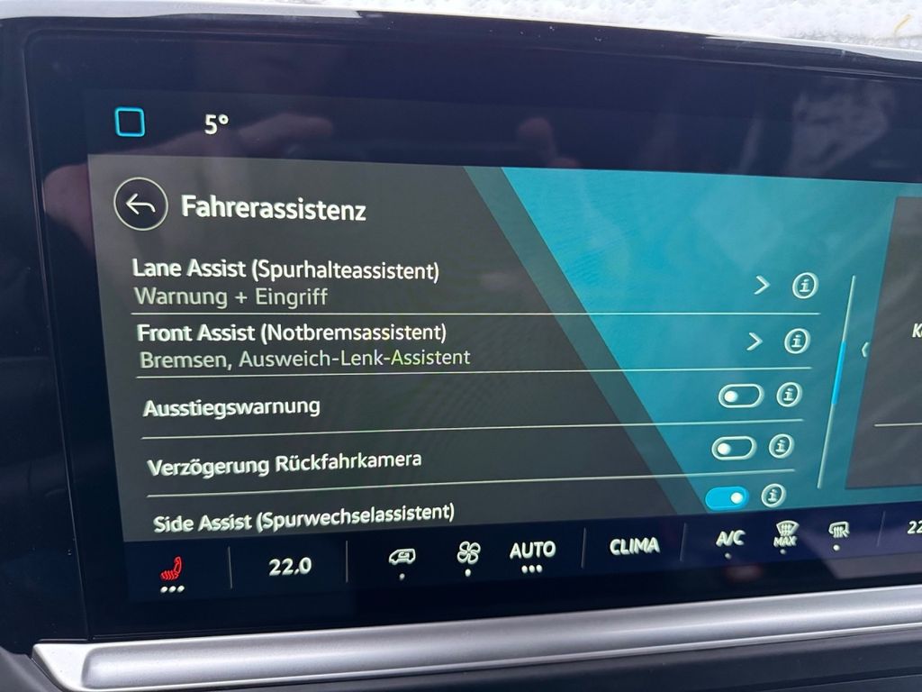 - Umgebungsansicht Area View inkl. Rückfahrkamera Rear View i. V. m. Spurwechselwarnung inkl. Anhängerbetrieb