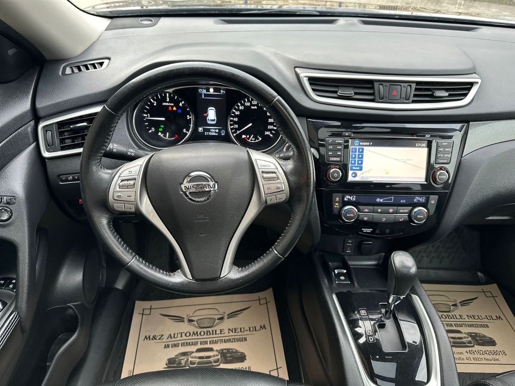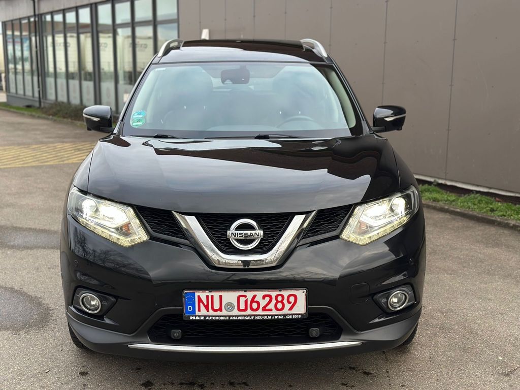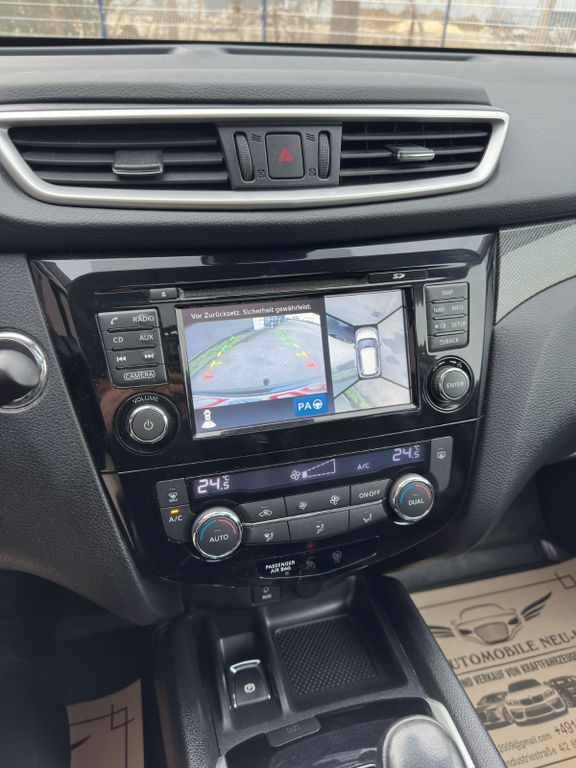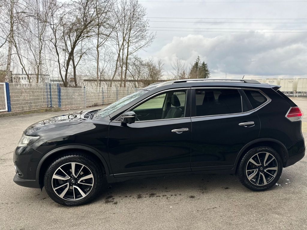 3. Bremsleuchte, Airbag Beifahrerseite abschaltbar, Airbag Fahrer-/Beifahrerseite und Seitenairbag vorn, Audio-/Bordcomputerbedienung am Lenkrad, Audiosystem: Radio/CD-Player mit 6 Lautsprecher, Ausstattungs-Paket: Nissan Connect mit Around View Monitor + Safety-Shield-Paket 360°, Automatische Fahrlichtschaltung, Außenspiegel elektr. verstell- und heizbar, Bordcomputer, Bremsassistent (Nissan Brake-Assist), Coming-Home-Lichtfunktion (Friendly Lightning), Einparkhilfe, Fahrassistenz-Paket Tekna, Fahrassistenz-System: Aktive Fahrkomfortregelung (Fahrwerksdämpfung), Fahrassistenz-System: Aktive Motorbremse, Fahrassistenz-System: Berganfahr-Assistent, Fahrassistenz-System: Kurvenbremskontrolle (Aktive Spurkontrolle), Fahrassistenz-System: Stauassistent inkl. Stop&Go-Funktion, Fensterheber elektrisch vorn + hinten, Fernentriegelung Tankklappe, Freisprechanlage Bluetooth, Frontscheibe Verbundglas, Gurtstraffer, Heckscheibe heizbar, Innenspiegel mit Abblendautomatik, Isofix-Aufnahmen für Kindersitz, Karosserie: 5-türig, Kindersicherung, Klimaautomatik 2-Zonen, Komfortsitz vorn links, Komfortsitz vorn rechts, Kopf-Airbag-System, Kopfstützen vorn verstellbar, Lendenwirbelstütze Sitz vorn links, Lenksäule (Lenkrad) höhen-/längsverstellbar, Leseleuchte vorn, Mittelarmlehne hinten mit Getränkehalter, Motor 1,6 Ltr. - 96 kW dCi Turbodiesel KAT, Nebelschlussleuchte, Panorama-Glasdach, Parkbremse elektrisch, Radstand 2706 mm, Reifendruck-Kontrollsystem, Reserverad als Notrad, Rücksitzbank verschiebbar, Schadstoffarm nach Abgasnorm Euro 5, Schalt-/Wählhebelgriff Leder, Schaltpunktanzeige, Sitz vorn links höhenverstellbar, Sitzausstattung: 5-Sitzer, Sitzbezug / Polsterung: Leder, Sitze vorn elektr. verstellbar, Sitzheizung vorn, Sonnenblenden mit Spiegel (beleuchtet), Start/Stop-Anlage, Steckdose (12V-Anschluß) in Mittelkonsole, Style-Paket, Türgriffe außen verchromt, USB-Schnittstelle, Verglasung hinten abgedunkelt, Wärmeschutzverglasung mit UV-Schutz