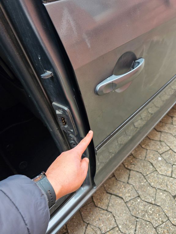 Die Rechte Tür wurde vom Kind einmal gegen die Wand geöffnet und dabei das Lack beschädigt (Letzte Bilder), ich wollte es selbst nachlackieren aber ich habe es verkackt. Original Farbe ( Basislack + Glanzschicht) sind dabei, man kann es mit Bissle Geduld selbst hinbekommen.