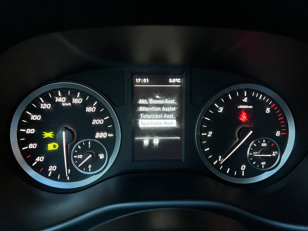 3-Tasten-Fernbedienung für Zentralverriegelung, 3. Bremsleuchte, Adaptives Bremslicht, Airbag Beifahrerseite, Airbag Fahrerseite, Anfahrhilfe (Berganfahr-Assistent), Außenspiegel asphärisch, beide, Außentemperaturanzeige, Befestigungsschienen für Dachträger, BlueEfficiency-Paket, Bremsassistent, Bremssystem mit ABS+ASR, Design- und Ausstattungslinie Base, Fahrassistenz-System: Attention-Assist (Müdigkeitserkennungs-Sensor), Fahrassistenz-System: Pannenmanagement, Fahrassistenz-System: Seitenwind-Assistent, Frontscheibe mit Scheibenantenne, Generator 185 A, Getriebe 6-Gang - FSG, Getränkehalter hinten, Getränkehalter vorn, Gurtstraffer, Haltegriff Beifahrerseite, Handschuhfach abschließbar, Karosserie/Aufbau: Kasten Standard, Karosserie/Aufbau: Kompakt, Kommunikationsmodul (LTE) für digitale Dienste, Laderaumtrennwand durchgehend, Lastenverankerung / Verzurrösen, Mercedes-Benz Notrufsystem, Modellpflege, Motor 1,7 Ltr. - 100 kW CDI KAT, Nebelschlussleuchte, Radstand 3200 mm, Schadstoffarm nach Abgasnorm Euro 6d-TEMP, Schiebetür Lade-/Fahrgastraum rechts, Sicherheitsgurt-System mit Warnanlage (Fahrer-/Beifahrerseite), Sitzbezug / Polsterung: Stoff, Sitze im Fahrerhaus: Fahrersitz verstellbar, Stahlfelgen 6,5x16, Verkleidung Fenstersäulen, Verkleidung im Lade-/FG-Raum: Hartfaser halbhoch, Verzurrschienen im Laderaum - Seitenwand an Dachrahmen, Wartungsintervall-Anzeige Assyst, Zul. Gesamtgewicht 2,80 t