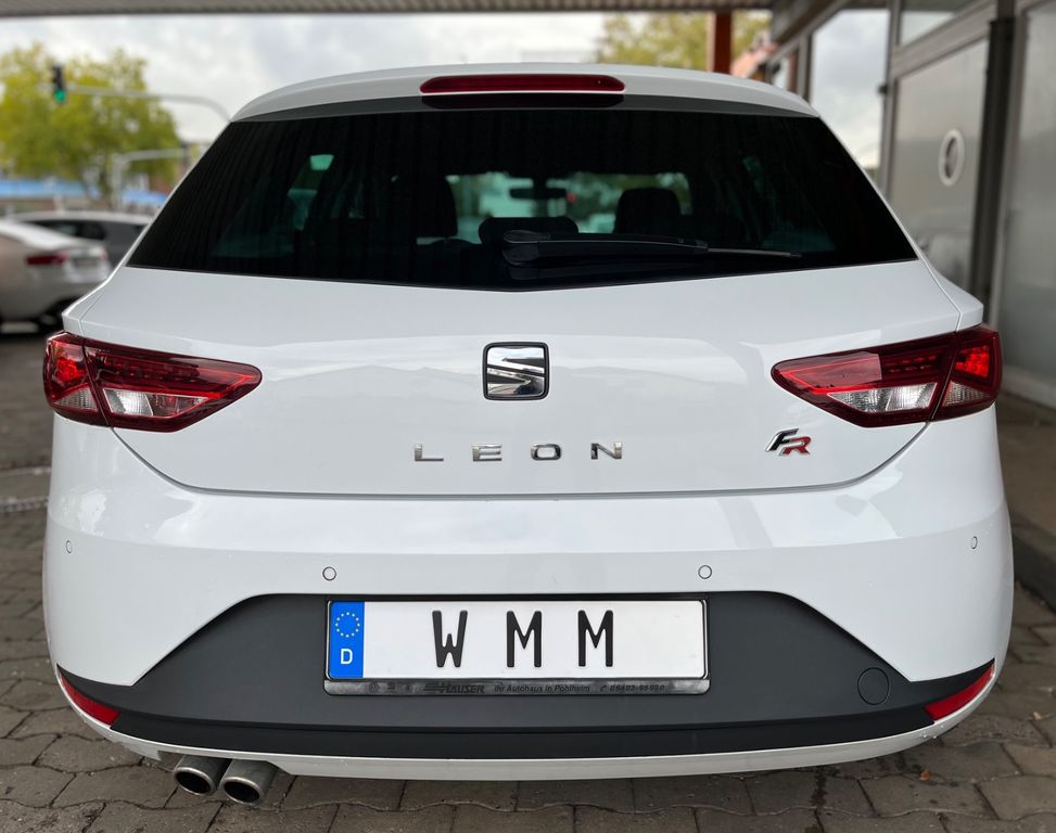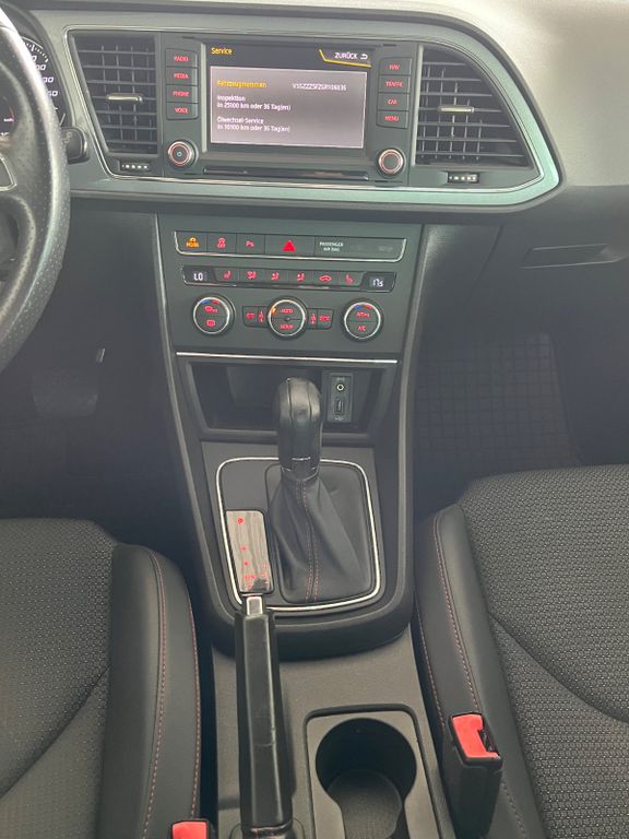8 Lautsprecher, Ablagetasche an Vordersitzlehnen, Airbag Beifahrerseite abschaltbar, Airbag Fahrer-/Beifahrerseite, Antriebs-Schlupfregelung (ASR), Außenspiegel elektr. anklappbar, Außenspiegel elektr. verstell-, heiz- und anklappbar, beide, Außenspiegel mit Spiegelabsenkung, rechts, Außenspiegel und Türgriffe außen in Wagenfarbe, Außentemperaturanzeige, Blinkleuchten LED in Außenspiegel integriert, Bordcomputer, Bremsassistent, Elektron. Differentialsperre (EDS), Fahrassistenz-System: Berganfahr-Assistent (Hill-Holder), Fahrassistenz-System: Berganfahr-Assistent und Elektron. Differentialsperre, Fahrassistenz-System: Fahrprofilauswahl (SEAT Drive Profile), Fensterheber elektrisch hinten, Handschuhfach beleuchtet, Heckleuchten LED, Innenausstattung: Chrom-Applikationen, Isofix-Aufnahmen für Kindersitz, Karosserie: 5-türig, Klimaanlage Climatronic 2-Zonen, Knieairbag Fahrerseite, Kopf-Airbag-System, Kopfstützen hinten (3-fach), Kopfstützen vorn verstellbar, Lendenwirbelstütze Sitz vorn links, verstellbar, Lendenwirbelstütze Sitz vorn rechts, verstellbar, Lenkrad (Sport/Leder), LM-Felgen, Mittelkonsole vorn mit Mittelarmlehne, Becherhalter, Ablagebox und Luftausströmer hinten, Motor 2,0 Ltr. - 135 kW TDI, Reifen-Reparaturset, Reifenkontroll-Anzeige, Rücksitzlehne geteilt/klappbar (1/3-2/3), Schadstoffarm nach Abgasnorm Euro 6, Schalt-/Wählhebelgriff Leder, Seitenairbag, Seitenscheiben hinten und Heckscheibe abgedunkelt, Sitz vorn links höhenverstellbar, Sitz vorn rechts höhenverstellbar, Sonnenblende links mit Spiegel (beleuchtet), Sonnenblende rechts mit Spiegel (beleuchtet), Sport-Fahrwerk FR / Cupra, Sportsitze vorn, Sprachsteuerungs-System, Start/Stop-Anlage, Stau-/Ablagefach unter Sitze vorn, Steckdose (12V-Anschluß) vorn, Stoßfänger lackiert, Wärmeschutzverglasung