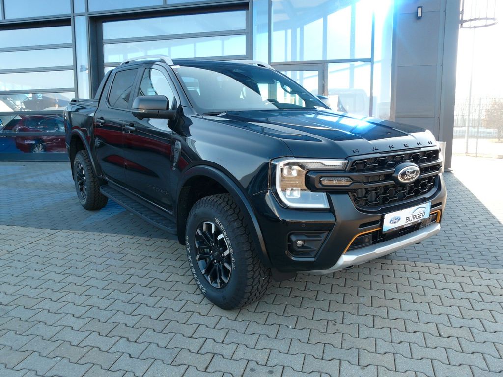 Ambiente-Beleuchtung vorn (LED), Ausstattungs-Paket: Turnier (Dachreling, Gepäckraum-Abtrennung Netz), Außenspiegel elektr. anklappbar, Außenspiegel elektr. verstell- und heizbar, Außenspiegel Sport Design Anthrazit, Blinkleuchte in Außenspiegel integriert, Bremskraftverstärker elektrisch, Dachhimmel Stoff, dunkel, Dachreling, Fahrassistenz-System: Fernlichtassistent (Scheinwerfer mit Abblendautomatik), Fahrassistenz-System: Pre-Collision-System, Fahrassistenz-System: Verkehrsschildassistent, Fahrwerk Bilstein, FordPass Connect inkl. eCall, Fußmatten hinten, Fußmatten Premium, Fußmatten vorn, Getriebe Automatik - Typ: 10R80 (10-Stufen), Getränkehalter vorn, Heckklappe Easy Lift (Pick-Up), Heckklappenentriegelung elektrisch (ohne Schloss), Heckleuchten LED, Heckscheibe heizbar, Innenraumfilter: Staub- und Pollenfilter, Innenspiegel mit Abblendautomatik, Karosserie/Aufbau: Pritsche, Doppelkabine, Klimaautomatik 2-Zonen, Kombiinstrument Digitalanzeige 8 Zoll, Lenkrad heizbar, Motor 2,0 Ltr. - 151 kW EcoBlue, Nebelscheinwerfer LED, Off-Road-Paket, Parkpilotsystem vorn und hinten, Rad-Paket 22, Radstand 3270 mm, Reifendruck-Kontrollsystem, Rücksitz-Paket 15, Schadstoffarm nach Abgasnorm Euro 6d, Schadstoffarm nach Abgasnorm Euro 6e, Schalt-/Wählhebel Drehschalter (Electronic-Shifter), Scheinwerfer-Assistent mit Tag-/Nachtsensor, Seitenschwellerschutz verstärkt, Kontrastfarbe, Sicherheits-Paket 3, Sitz-Paket 7, Sitzbezug / Polsterung: Leder, Sportbügel hinten (GFK) Wagenfarbe (Ladefläche), Standard Variante, Start/Stop-Anlage, Stoßfänger hinten mit Trittstufe, Türgriffe außen Wagenfarbe, Unterbodenschutz Wachs Basis, Unterfahrschutz (Motor), Verglasung hinten abgedunkelt (Privacy Glass)