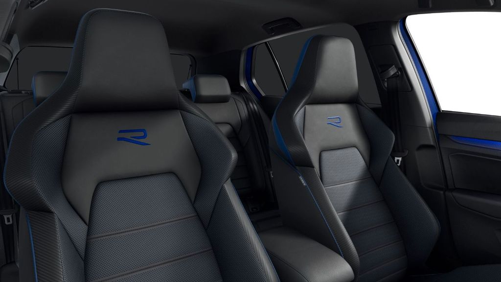 - Sitzmittelbahnen der Vordersitze und der äußeren Rücksitzplätze in Leder Nappa gelocht R -Logo vorn