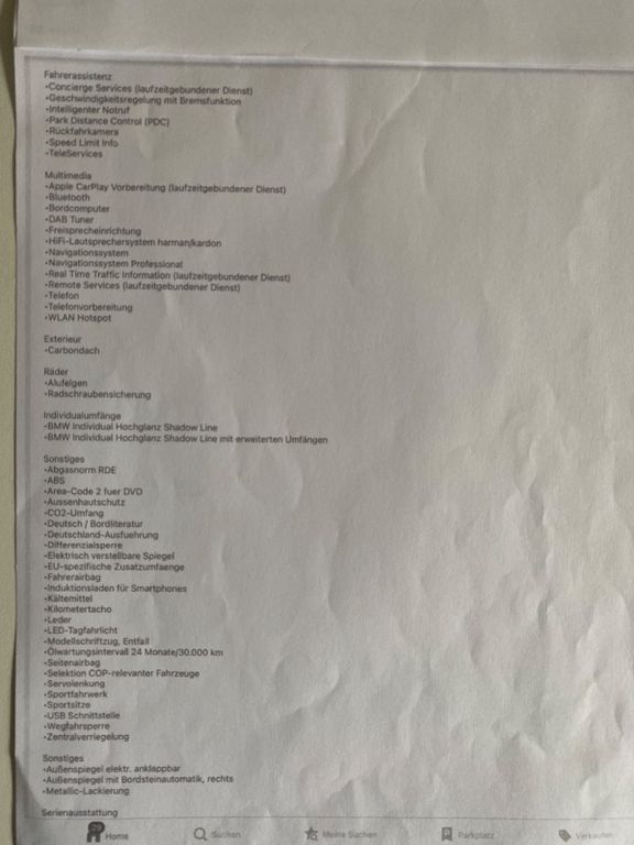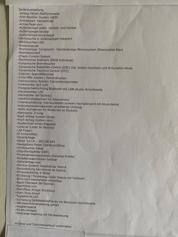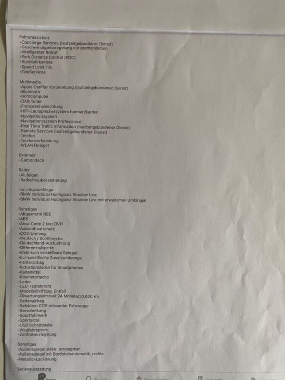 Sommerfahrzeug,Garagenwagen,keine Rennstrecke,keine Regenfahrt,Vertragskarte BMW Service inkl. bis 20.8.27, keine Nachlakierung,Original BMW Carbonteile verbaut dazu gehoert Frontgitter,Ziergitter links+rechts,Motorabdeckung,Abdeckung Lenkrad,Schalthebelabdeckung,Originalteile