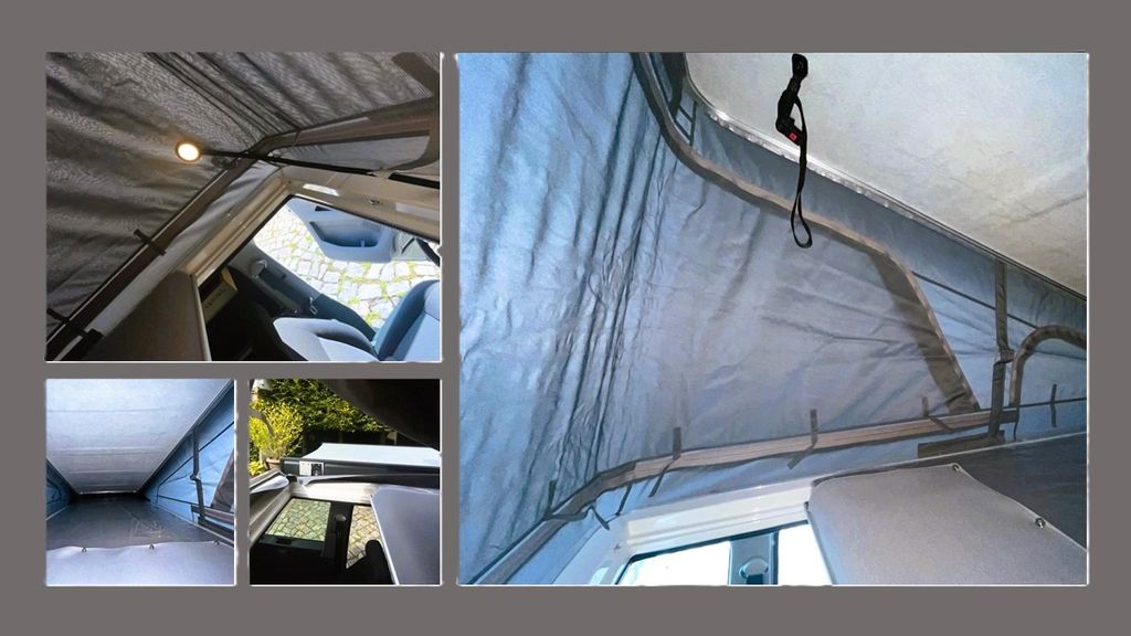 Schlafplätze für 4 Personen: großzügiges Doppelbett im Innenraum + Aufstelldach mit Zusatzbett