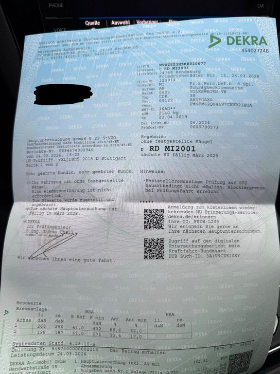 TÜV ohne Mängel bekommen . Bis März 2028