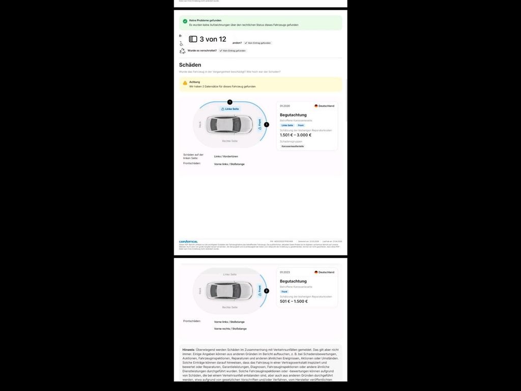 In den Bildern habe ich ein Carvertical eingefügt, dort ist zu sehen bis wann der KM stand hinterlegt ist.