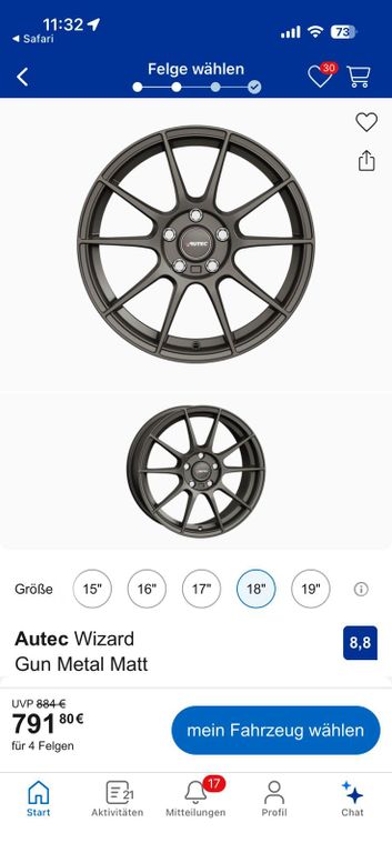 Aktuell sind die Winterräder Autec Wizard (18 Zoll) montiert (sind vor dem Winter neu bezogen worden mit Hankooks) siehe letztes Bild