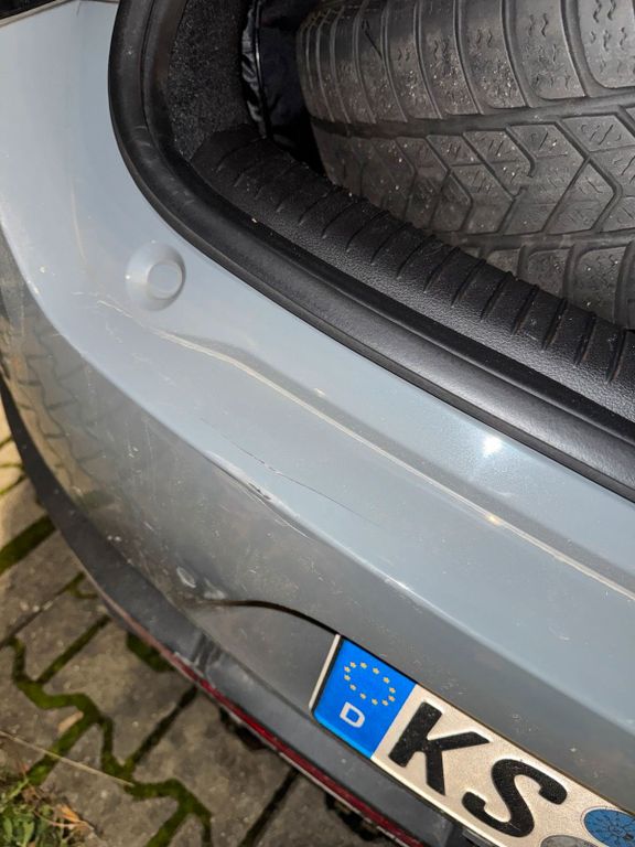 Am Kofferraum gibt es einen kleinen Riss in der Stoßstange (siehe Bilder).