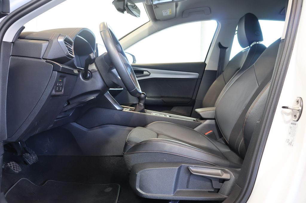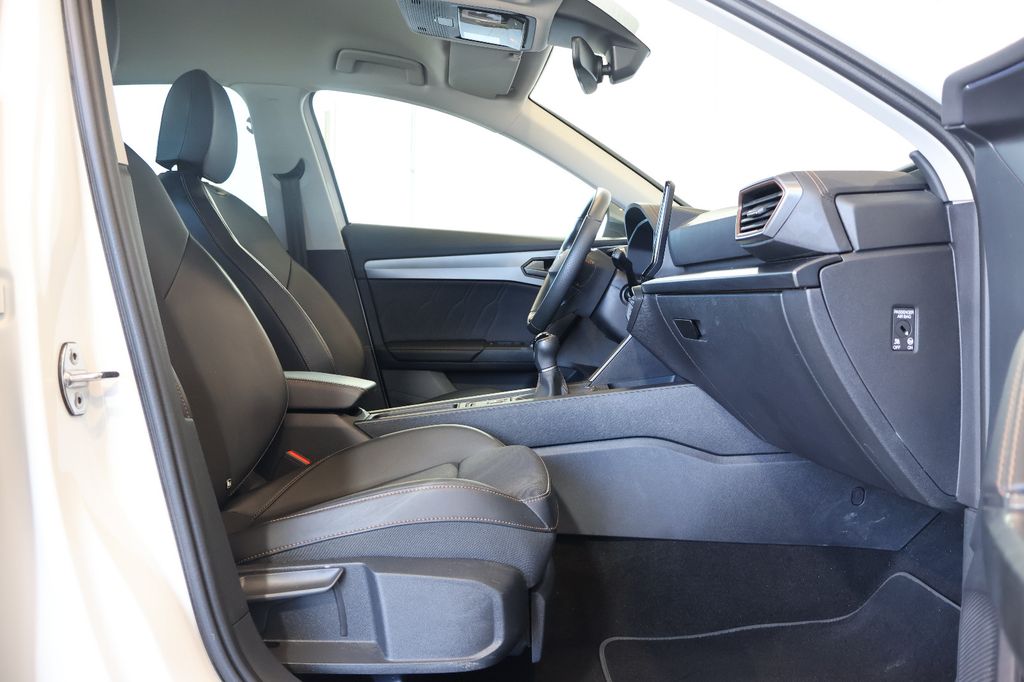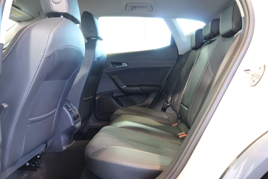 7 Lautsprecher, Airbag Beifahrerseite abschaltbar, Airbag Fahrer-/Beifahrerseite, Antriebs-Schlupfregelung (ASR), Außenspiegel elektr. verstell-, heiz- und anklappbar mit Spiegelabsenkung und Welcome Light, Blinkleuchten LED in Außenspiegel integriert, Bluetooth-Schnittstelle mit Freisprecheinrichtung integriert, Dachreling schwarz, hochglänzend, Doppeltonhorn, Einstiegsleisten (Aluminium) vorn, beleuchtet, Elektron. Differentialsperre (XDS), Fahrassistenz-System: Fahrprofilauswahl (CUPRA Drive Profile), Fensterheber elektrisch vorn + hinten mit Komfortschaltung, Fensterzierleisten schwarz hochglänzend, Gepäckraumabdeckung / Rollo, Heckleuchten Voll-LED mit dynamischem Lichtband (Infinite Light), Isofix-Aufnahmen für Kindersitz an Rücksitz, Karosserie: 5-türig, Klimaanlage Climatronic 3-Zonen, Kombiinstrument digital (virtual cockpit), Kopf-Airbag-System, Laderaumboden variabel und herausnehmbar, Lendenwirbelstütze Sitz vorn links, verstellbar, Lendenwirbelstütze Sitz vorn rechts, verstellbar, Licht- und Sicht-Paket, LM-Felgen, Media-System Plus, Mittelarmlehne hinten, Mittelkonsole vorn mit Mittelarmlehne, Becherhalter, Ablagebox und Luftausströmer hinten, Motor 1,5 Ltr. - 110 kW 16V TSI ACT, Notrufsystem, Otto-Partikelfilter (OPF), Parkbremse elektrisch, Radioempfang digital (DAB+), Radstand 2679 mm, Reifen-Reparaturset, Rücksitzlehne geteilt/klappbar (1/3-2/3), Rücksitzlehnen umklappbar mit Fernentriegelung im Kofferraum, Schadstoffarm nach Abgasnorm Euro 6d, Seitenairbag, Seitenairbag vorn mitte (Central Airbag), Seitenscheiben hinten und Heckscheibe abgedunkelt, Sitz vorn links höhenverstellbar, Sitz vorn rechts höhenverstellbar, Sitzbezug / Polsterung: Stoff, Sonnenblende links mit Spiegel (beleuchtet), Sonnenblende rechts mit Spiegel (beleuchtet), Sportsitze vorn, Start/Stop-Anlage, Steckdose (12V-Anschluß) vorn, Steckdose 230V im Gepäckraum, USB-Ladeanschlüsse (2-fach, Typ C) für 2.Sitzreihe, USB-Schnittstelle vorn (2-fach, Typ C), Verzurrösen Koffer-/Laderaum, Warnanlage für Sicherheitsgurt-System, Wärmeschutzverglasung