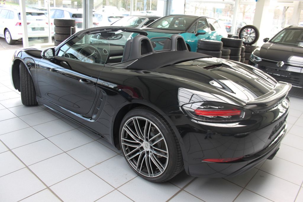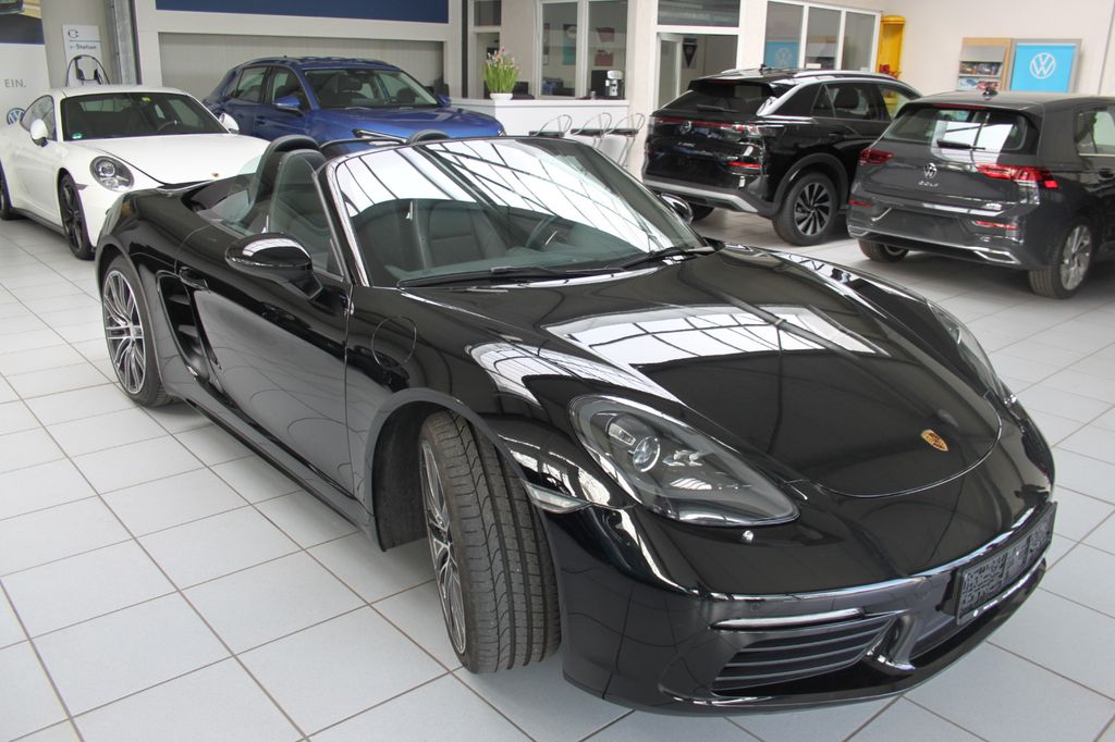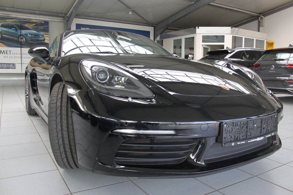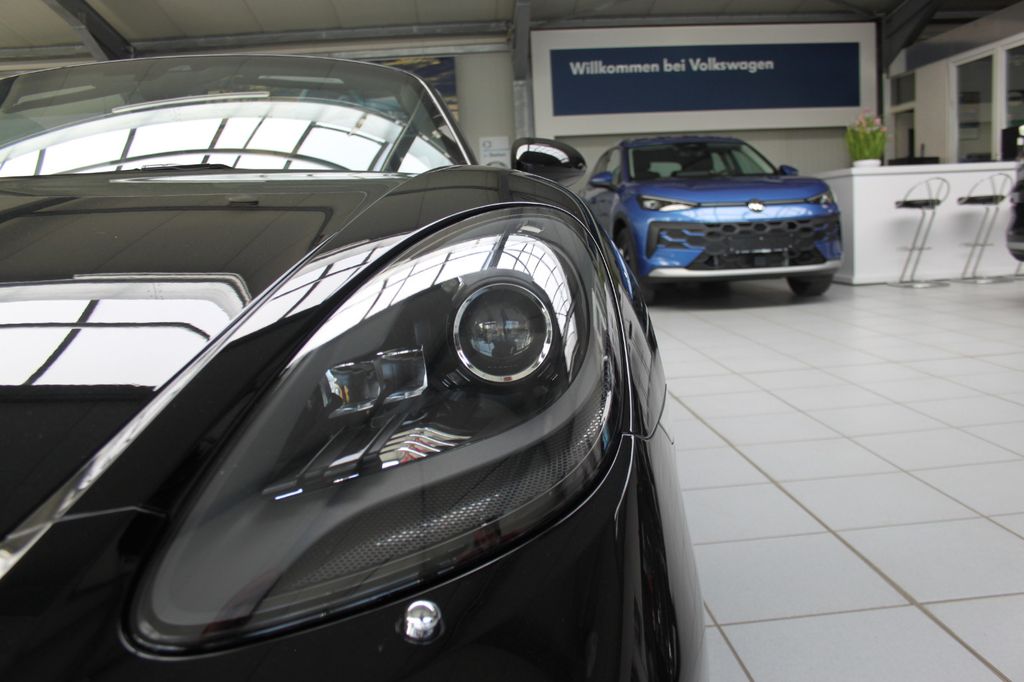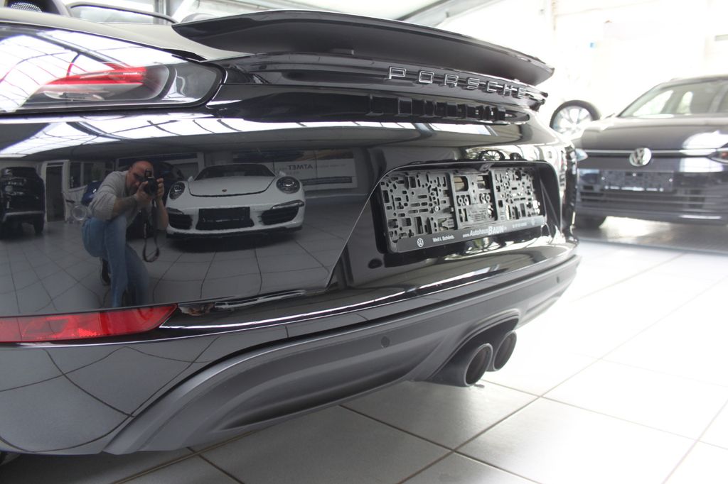 Airbag Fahrer-/Beifahrerseite, Antriebsart: Heckantrieb, Anzeigeinstrumente mit Hintergrund schwarz, Außenspiegel asphärisch, links, Außenspiegel elektr. verstell- und heizbar, beide, Blinkleuchten LED, Bremssättel schwarz eloxiert, Dachhimmel schwarz, Dachhimmel Stoff, Diebstahlsicherung für Räder (Felgenschlösser), Drehzahlmesser, Einschaltautomatik für Fahrlicht, Getränkehalter, Heckflügelspoiler, Heckleuchten LED, Heckscheibe heizbar, Innenausstattung: Glattleder, Serienlederfarbe, Karosserie: 2-türig, Kopf-Airbag-System Porsche Side Impact Protection System (POSIP), Lenksäule (Lenkrad) verstellbar, Motor 2,0 Ltr. - 220 kW Turbo KAT, Otto-Partikelfilter (OPF), Parkbremse elektrisch, Porsche Car Connect, Porsche Communications Management (PCM), Reifen-Reparaturkit, Reifendruck-Kontrollsystem, Schadstoffarm nach Abgasnorm Euro 6, Schalt-/Wählhebelgriff Leder, Sitzbezug / Polsterung: Alcantara / Kunstleder, Sport Taste, Sportsitze, Start/Stop-Anlage, Uni-Lackierung, Verdeckbetätigung elektrisch, Verglasung getönt, Windschott