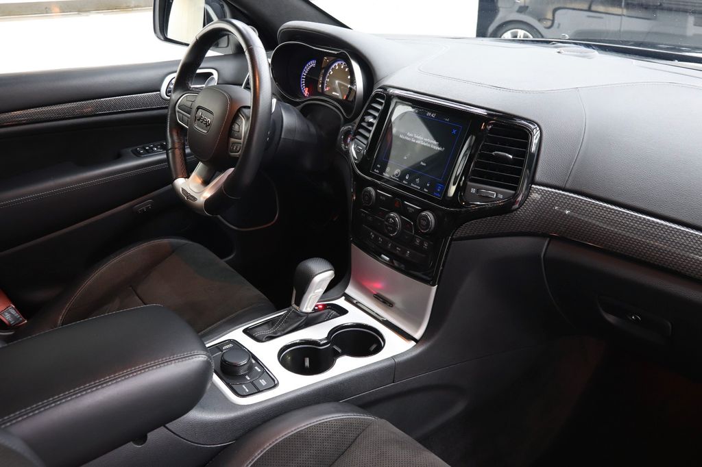 Airbag Fahrer-/Beifahrerseite, Aktive Kopfstützen, Anhänger-Stabilisierungs-Programm, Antriebs-Schlupfregelung (ASR), Audio-Navigationssystem: UConnect Smartouch Multimedia-System mit Navigationssystem, Audiobedienung am Lenkrad, Automatische Fahrlichtschaltung / Lichtsensor, Außenspiegel elektr. anklappbar, Außenspiegel elektr. verstell- und heizbar, beide, Außenspiegel mit Abblendautomatik, Außenspiegel Wagenfarbe, Bordcomputer, Bremsassistent, CD-Laufwerk in der Mittelarmlehne, Dachreling verchromt, Einstiegsleisten (verchromt), Elektron. Traktionskontrolle, Fahrassistenz-System: Park-Assistent, Fahrassistenz-System: Überschlag-Schutzsystem (ERM), Fensterheber elektrisch vorn + hinten, Freisprechanlage UConnect (mit Bluetooth-Schnittstelle), Gepäckraumabdeckung / Rollo, Innenausstattung: Carbon-Optik, Innenausstattung: Leder (Laguna), Innenausstattung: Metall-Applikationen, Innenspiegel mit Abblendautomatik, Isofix-Aufnahmen für Kindersitz, Karosserie: 5-türig, Klimaautomatik 2-Zonen, Knieairbag Fahrerseite, Kopf-Airbag-System (Windowbag) vorn + hinten, Lendenwirbelstütze Sitz vorn links, Lendenwirbelstütze Sitz vorn rechts, Lenkrad (Sport/Leder), Lenkrad heizbar, Lenksäule (Lenkrad) elektr. höhen-/längsverstellbar, Memoryfunktion - Außenspiegel, Sitz, Modellpflege (2), Motor 6,2 Ltr. - 522 kW V8 KAT, Nebelschlussleuchte, Panoramadach vorn elektrisch, hinten fest, Parkpilotsystem vorn und hinten, Pedale Aluminium, Radstand 2915 mm, Reserverad in Fahrbereifung, Rückfahrkamera, Rücksitz geteilt / klappbar, Schalt-/Wählhebelgriff Leder, Seitenairbag, Seitenschutzleisten Chromoptik, Sitz vorn links elektr. verstellbar, Sitz vorn rechts elektr. verstellbar, Sitzbelüftung vorn, Sitzheizung vorn, Smartphone Schnittstelle (Apple CarPlay & Android Auto), Sonnenblenden mit Spiegel (beleuchtet), Sound-System Harman-Kardon, Sport-Fahrwerk mit adaptivem Dämpfersystem (Selec-Trac), Sportsitze, SRT-Design-Paket, Stoßfänger Wagenfarbe, Türgriff außen verchromt, Unterfahrschutz, USB-Anschluss, Verglasung hinten abgedunkelt, Wärmeschutzverglasung (Dämmglas), Innenspiegel automatisch abblendend, Regensensor, Sitzheizung vorn
