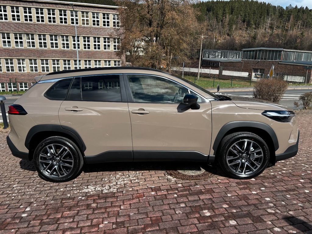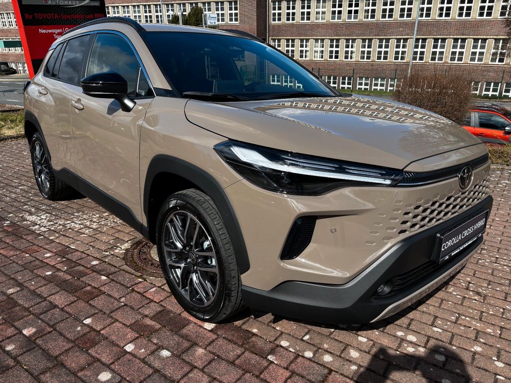 2-Farben-Lackierung Metallic, Ablagetasche an Beifahrersitzlehne, Airbag Beifahrerseite abschaltbar, Airbag Fahrer-/Beifahrerseite, Ambiente-Beleuchtung vorn (LED), Anzeigeinstrumente digital, Außenspiegel elektr. anklappbar, Außenspiegel elektr. verstell- und heizbar, Bi-LED-Scheinwerfer, Bluetooth-Schnittstelle, Cloud-Navigationssystem, Dachreling, Digitaler Fahrzeugschlüssel im Smartphone (Smart Key), Einparkhilfe hinten, Elektr. Bremskraftverteilung, Elektromotor 83 kW (Hybridantrieb), Fahrassistenz-System: aktiver Spurhalteassistent (Lenkunterstützung), Fahrassistenz-System: Ausstiegswarnung (Safe Exit Assist, SEA), Fahrassistenz-System: Berganfahrkontrolle (HAC), Fahrassistenz-System: Fernlichtassistent (Abblendautomatik Fahrlicht, AHB), Fahrassistenz-System: Kreuzungs-Assistent, Fahrassistenz-System: Pre-Collision-System (PCS), Fahrassistenz-System: Querverkehrs-Assistent Heck (Rear Cross Traffic Alert, RCTA), Fahrassistenz-System: Rückfahr-Assistent mit automatischer Bremsfunktion, Fahrassistenz-System: Sicherheitssystem Toyota Connect mit automatischem Notruf (eCall), Fahrassistenz-System: Spurhalteassistent (LDA), Fahrassistenz-System: Totwinkel-Assistent (BLIS), Fahrassistenz-System: Verkehrszeichenerkennung (RSA), Fensterheber elektrisch vorn + hinten, Freisprechanlage Bluetooth, Geschwindigkeits-Begrenzeranlage mit Memoryfunktion, Heckleuchten LED, Innenraumfilter: Staub- und Pollenfilter mit Aktivkohlefilter, Innenspiegel mit Abblendautomatik, Isofix-Kindersitz-System, Karosserie: 5-türig, Klimaautomatik 2-Zonen, Knieairbag Fahrerseite, Kofferraumdeckel / Heckklappe elektr. betätigt Easy-Load (öffnen + schliessen), Komfort-Paket, Kopf-Airbag-System, Kopfstützen vorn und hinten verstellbar, Lendenwirbelstütze Sitz vorn links, elektr. verstellbar, Lenkrad (3-Speichen), Lenksäule (Lenkrad) verstellbar, LM-Felgen, Motor 2,0 Ltr. - 112 kW (System: 145 kW) 16V Hybrid, Nebelscheinwerfer LED, Park-Assistent Intelligent Park Assist, Parkbremse elektrisch (EPB), Pre-Crash-System und Adaptive Geschwindigkeitsregelanlage, Radstand 2640 mm, Reifen-Reparaturkit, Reifendruck-Kontrollsystem, Rückfahrkamera, Rücksitz geteilt, Rücksitz klappbar, Schadstoffarm nach Abgasnorm Euro 6d, Seitenairbag, Service-System: MyT-Connected Services, Sitzbezug / Polsterung: Stoff, Toyota Smart Connect Plus, Türgriffe außen Wagenfarbe, Universal-Schnittstelle (USB-/ iPod-/ AUX-Anschluss), USB-Anschlüsse (2) für 2.Sitzreihe, Verglasung hinten abgedunkelt, Warnanlage für Sicherheitsgurte hinten, Warnanlage für Sicherheitsgurte vorn