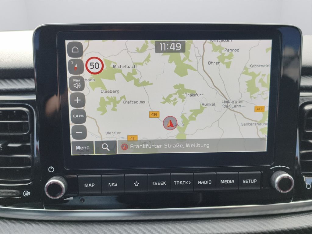 Audio-Navigationssystem KIA (8 Zoll); Freisprecheinrichtung (Bluetooth) mit Sprachsteuerung; USB und Aux-In-Anschluss; USB-Anschluss Mittelkonsole; Audiosystem: Radio mit RDS / MP3; Bluetooth; DAB-Tuner (Radioempfang digital); Touchscreen-Farbdisplay (8,0 Zoll); Smartphone Schnittstelle (Apple CarPlay & Android Auto); Anzeigeinstrumente Supervision mit LCD Display 4,2 Zoll; Mobile Online Dienste UVO Connect / Kia Connect; 6 Lautsprecher
