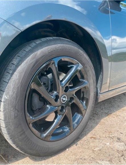 eine der AluFelgen hat unerfreulicherweise einmal Bekanntschaft mit dem Kantstein gemacht. Bild an bei. Die drei anderen sind verschont geblieben.