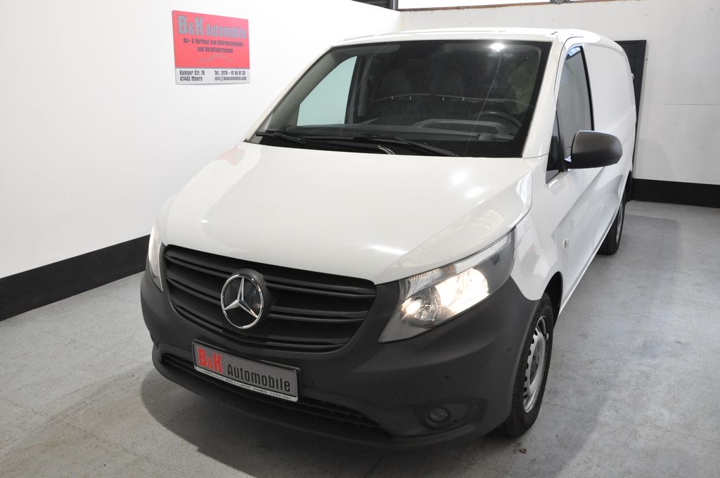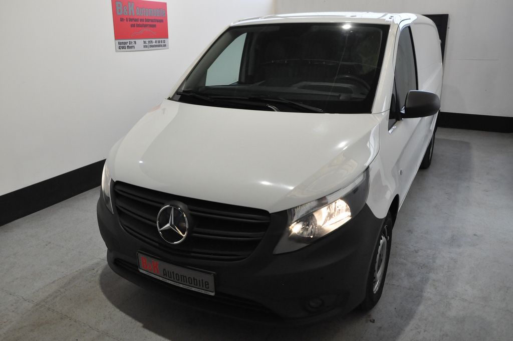 3-Tasten-Fernbedienung für Zentralverriegelung, 3. Bremsleuchte, Adaptives Bremslicht, Airbag Beifahrerseite, Airbag Fahrerseite, Anfahrhilfe (Berganfahr-Assistent), Anhängerkupplung: Elektrik für Anhängersteckdose, Außenspiegel asphärisch, beide, Außenspiegel elektr. verstell- und heizbar, beide, Außentemperaturanzeige, Befestigungsschienen für Dachträger, BlueEfficiency-Paket, Bremsassistent, Deckenleuchte im Laderaum, Design- und Ausstattungslinie PRO, Einschaltautomatik für Fahrlicht, Fahrassistenz-System: Attention-Assist (Müdigkeitserkennungs-Sensor), Fahrassistenz-System: Pannenmanagement, Fahrassistenz-System: Seitenwind-Assistent, Frontscheibe mit Scheibenantenne, Generator 250 A, Geschwindigkeits-Begrenzeranlage 210 km/h, Getriebe Automatik GTronic - (9-Stufen), Getränkehalter vorn, Gurtstraffer, Handschuhfach abschließbar, Karosserie/Aufbau: Kasten Standard, Karosserie/Aufbau: lang, Kombiinstrument mit Pixel-Matrix-Display, Kommunikationsmodul (LTE) für digitale Dienste, Laderaumtrennwand durchgehend, Lastenverankerung / Verzurrösen, Lenkrad (Lenksäule mech. verstellbar), Lenkrad mit Multifunktion inkl. Reiserechner, Mercedes-Benz Notrufsystem, Modellpflege, Motor 2,0 Ltr. - 120 kW CDI KAT, Nebelschlussleuchte, Pro, Radstand 3200 mm, Reifen 205/65 R16C 103/101 T, Schadstoffarm nach Abgasnorm Euro 6d, Scheibenwischer mit Regensensor, Schiebetür Lade-/Fahrgastraum rechts, Sicherheitsgurt-System mit Warnanlage (Fahrer-/Beifahrerseite), Sitze im Fahrerhaus: Fahrersitz Komfort, Sitze im Fahrerhaus: Fahrersitz mit Lendenwirbelstütze, Stahlfelgen 6,5x16, Verkleidung Fenstersäulen, Verkleidung im Lade-/FG-Raum: Hartfaser halbhoch, Vlies-Batterie 92 Ah, Wartungsintervall-Anzeige Assyst, Wärmeschutzverglasung, Zul. Gesamtgewicht 2,80 t