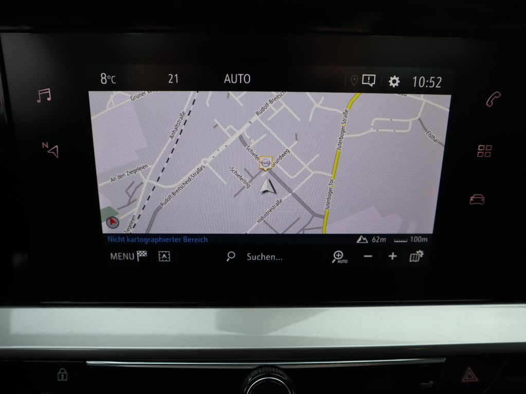 - Multimedia Navi mit 7“ Touchscreen-Farbdisplay, Sprachsteuerung für Audio, Telefon & Navigation, Digitaler Radioempfang DAB+; Audio: Automatische Musikerkennung (Titel, Album, Interpret, Cover) bei Audiogeräten mit USB-Anschluss, Bluetooth®-Audiostreaming Telefon: Freisprecheinrichtung via Bluetooth-Schnittstelle, Anzeige von Telefonbuch und Ruflisten; Navigation: Navigationssystem mit integriertem Speicher, Straßenkarte Europa (inkl. Russland und Türkei), Kartendarstellung in 3-D, Dynamische Routenführung über Karten- und/oder Pfeildarstellung, Anzeige von Sonderzielen, Tourenplanung, GPS-Modul, Anzeige von Ladestationen (Mokka-e) Smartphone-Integration via Apple CarPlay und Android Auto: Anzeige und Bedienung ausgewählter Apps und Funktionen über das Touchscreen-Farbdisplay oder per Sprachbedienung
