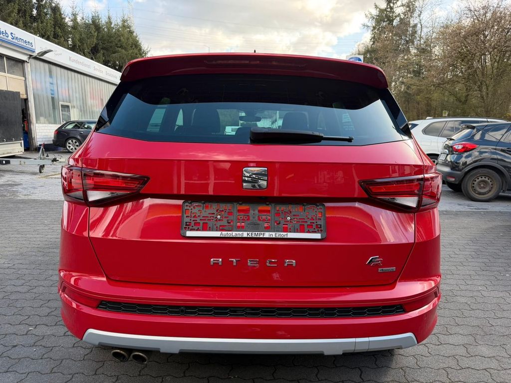 3. Bremsleuchte, Airbag Beifahrerseite abschaltbar, Airbag Fahrer-/Beifahrerseite, Antriebs-Schlupfregelung (ASR), Antriebsart: Allradantrieb, AUX-IN-Anschluss und 2 x USB-Anschluss, Außenspiegel elektr. verstell-, heiz- und anklappbar mit Spiegelabsenkung und Welcome Light, Außenspiegel lackiert, Außenspiegel und Türgriffe außen in Wagenfarbe, Blinkleuchte in Außenspiegel integriert, Bordcomputer, Bremsassistent, Chromleisten an Seitenfenstern, Dachhimmel schwarz, Dachreling, Doppeltonhorn, Einparkhilfe hinten, Einstiegsleisten beleuchtet, Fahrassistenz-System: Berganfahr-Assistent (Hill-Holder), Fahrassistenz-System: Fahrprofilauswahl (SEAT Drive Profile), Fahrassistenz-System: Müdigkeitserkennung, Fahrassistenz-System: Umfeldbeobachtungssystem (Front assist) mit City-Notbremsfunktion, Fensterheber elektrisch vorn + hinten, Fußraumbeleuchtung vorn, Gepäckraumabdeckung / Rollo, Handschuhfach beleuchtet, Heckleuchten LED, Innenausstattung: Chrom-Applikationen, Innenraumlicht-Paket LED, Isofix-Aufnahmen für Kindersitz, Karosserie: 5-türig, Klimaanlage Climatronic 2-Zonen, Knieairbag Fahrerseite, Komfortsitze, Kopf-Airbag-System, Kopfstützen hinten (3-fach), Kopfstützen vorn, Lendenwirbelstütze Sitz vorn links, verstellbar, Lendenwirbelstütze Sitz vorn rechts, verstellbar, Lendenwirbelstütze verstellbar, Lenkrad (Sport/Leder) mit Multifunktion, Mittelarmlehne hinten, Mittelkonsole vorn mit Mittelarmlehne, Becherhalter, Ablagebox und Luftdüsen hinten, Motor 2,0 Ltr. - 140 kW TDI, Parkbremse elektrisch, Radstand 2630 mm, Reifenkontroll-Anzeige, Rücksitzlehne klappbar, Rücksitzlehnen umklappbar mit Fernentriegelung im Kofferraum, Schadstoffarm nach Abgasnorm Euro 6d-TEMP, Schalt-/Wählhebelgriff Leder, Scheinwerfer LED, Seitenairbag, Seitenscheiben hinten und Heckscheibe abgedunkelt, Sitz vorn links höhenverstellbar, Sitz vorn rechts höhenverstellbar, Sitz-Paket Dinamica, Start/Stop-Anlage, Stau-/Ablagefach unter Sitz vorn links, Steckdose (12V-Anschluß) vorn, Stoßfänger FR-Design, Verglasung getönt, Verzurrösen Koffer-/Laderaum, Wärmeschutzverglasung