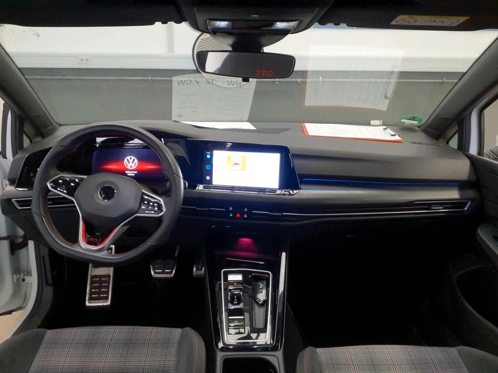 3-Punkt-Sicherheitsgurt hinten mitte, Abbiege- und Allwetterlicht / Schlechtwetter-Licht, Airbag Fahrer-/Beifahrerseite, Beifahrerairbag abschaltbar, Ambiente-Beleuchtung (30 Farben), Antennen-Diversity, App-Connect inkl. App-Connect Wireless (Apple CarPlay, Android Auto), Audiosystem Ready 2 Discover (inkl. Streaming & Internet, Touchscreen, Bluetooth), Ausstattung GTI, Automatische Fahrlichtschaltung (ALS) mit Leaving Home / Coming-Home-Lichtfunktion, Außenspiegel elektr. verstell- und heizbar, mit Memory, Außenspiegel mit Umfeldleuchte und Projektionsfunktion, Außenspiegel Wagenfarbe, Bremsassistent, Dachspoiler, Diebstahlsicherung für Räder (Felgenschlösser), Differentialsperre (Vorderachse), Digital Cockpit (Instrumentenanzeige digital), Einparkhilfe vorn und hinten, Elektron. Stabilitäts-Programm (ESP) mit Bremskraftverstärker elektro-mechanisch, Fahrassistenz-System: Abbiegebremsfunktion und Ausweichunterstützung, Fahrassistenz-System: Fahrprofilauswahl, Fahrassistenz-System: Müdigkeitserkennung, Fahrassistenz-System: Spurhalteassistent (Lane Assist), Fahrassistenz-System: Umfeldbeobachtungssystem (Front assist) mit City-Notbremsfunktion, Fahrassistenz-System: Verkehrszeichenerkennung, Fensterheber elektrisch vorn und hinten, Frontscheibe Verbundglas getönt, Fußgänger-Schutzsystem (passiv), Fußmatten Textil, Fußraumbeleuchtung vorn LED (Farbe einstellbar), Geschwindigkeits-Begrenzeranlage, Heckleuchten LED, Innenausstattung: Dekoreinlagen Black Metal Chrome, Innenspiegel abblendbar, Isofix-Aufnahmen für Kindersitz an Beifahrersitz und Rücksitz (inkl. i-Size-Kindersitze), Karosserie: 5-türig, Keyless-Start, Klimaanlage Climatronic 3-Zonen inkl. Fondbedienung, Kopfstützen hinten (3-fach), Lautsprecher (7, vorn und hinten), LED Lichtleiste zwischen Scheinwerfer und Türgriffschalen außen beleuchtet, Lendenwirbelstützen vorn, Lenksäule (Lenkrad) mechan. verstellbar, Höhen-/Längsverstellung, Leseleuchten vorn und hinten LED, Leuchtweitenregelung automatisch, Mittelarmlehne vorn höhen-/längsverstellbar, Mobile Online Dienste Vorbereitung We Connect und We Connect Plus, Mobiltelefon Schnittstelle mit kabelloser Ladefunktion, Motor 2,0 Ltr. - 180 kW TSI, Multimedia-Schnittstelle 2 x USB (Typ C) vorn und 2 x USB-Ladeanschluß (Typ C) Mittelkonsole hinten (45 W), Nebelschlussleuchte, Nichtraucher-Paket, Notrufsystem, Otto-Partikelfilter (OPF), Parkbremse elektrisch mit Auto-Hold-Funktion, Pedale Edelstahl, Progressivlenkung, Radioempfang digital (DAB+), Reifen-Reparaturkit (Tire Mobility Set), Reifenkontroll-Anzeige, Rücksitzlehne geteilt mit Mittelarmlehne, Schadstoffarm nach Abgasnorm Euro 6d, Scheibenwischer mit Intervallschaltung, regulierbar, Scheinwerfer LED Plus, Seitenairbag vorn mit Center-Airbag, Kopf-Airbag-Einheit vorn und hinten, Service-System: Intelligente Fahrzeugvernetzung (Car2X), Sicherheitsgurte vorn mit Gurtstraffer, höhenverstellbar, Sitzbezug / Polsterung: Stoff Scale Paper, Sitze vorn höhenverstellbar, Sitze: Top-Sportsitze vorn, Sonnenblenden mit Spiegel (beleuchtet), Sport-Fahrwerk, Stabilisator vorn, Start/Stop-Anlage, Steckdose 12V im Koffer-/Laderaum, Türgriffe außen Wagenfarbe, Verbandkasten und Warndreieck, Warnanlage für Sicherheitsgurte vorn und hinten