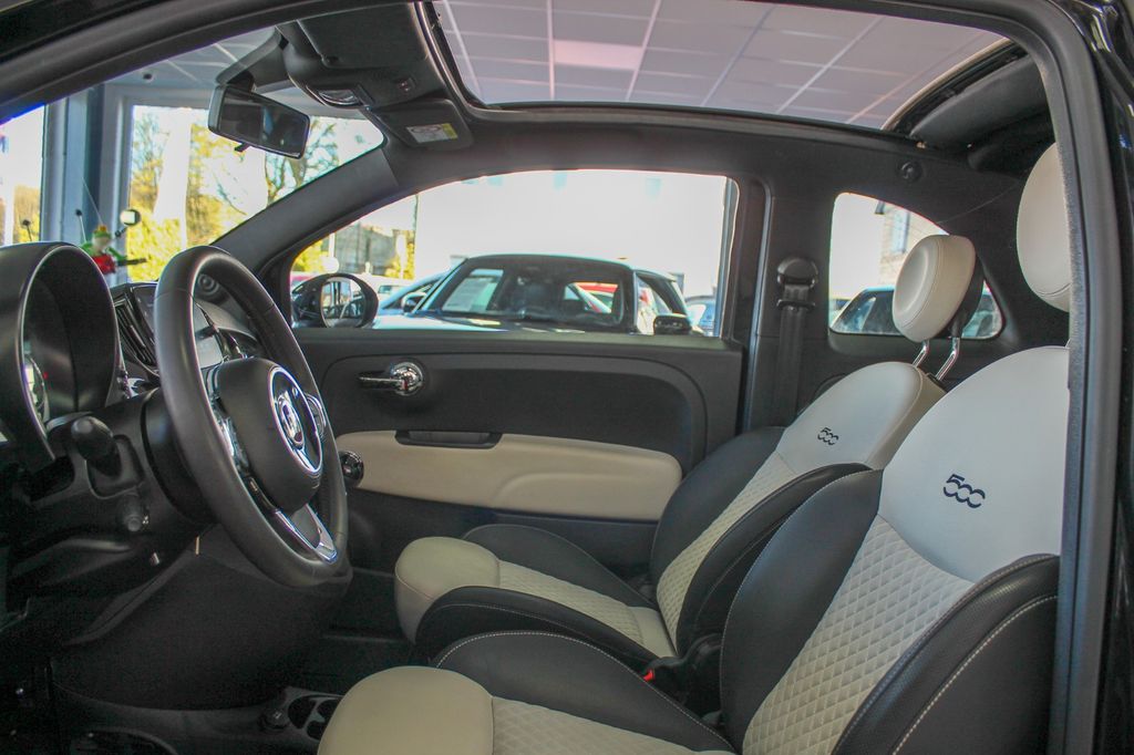 Einparkhilfe elektronisch, Einparkhilfe hinten, Infotainment-System: UConnect mit MP3-Player, DAB Radioempfang (Touchscreen 7"), Metallic-Lackierung, Ablagetasche an Vordersitzlehnen, Airbag Fahrer-/Beifahrerseite, Auspuffblende verchromt, Autom. Begleitfunktion der Beleuchtung (Follow me home), Automatische Türverriegelung, Außenspiegel elektr. verstellbar, beide, Außenspiegel verchromt, Beifahrerairbag abschaltbar, Bordcomputer, Einstiegsleisten (verchromt), Elektr. Bremskraftverteilung, Fahrassistenz-System: Bremsassistent, Faltdach elektrisch, Fensterzierleisten verchromt, Fußmatten, Geschwindigkeits-Begrenzeranlage, Gurtstraffer vorn, Heckscheibe heizbar, Heckspoiler, Innenausstattung: Dekoreinlagen Armaturenbrett, lackiert, Isofix-Aufnahmen für Kindersitz an Rücksitz, Karosserie: 2-türig, Knieairbag Fahrerseite, Komfort-Paket, Kopf-Airbag-System vorn, Kopf-Airbag-System vorn und hinten, Kopfstützen vorn verstellbar, Kühlergrill verchromt, Lenksäule (Lenkrad) höhenverstellbar, LM-Felgen, Mild-Hybrid 51 kW (Motor 1,0 Ltr. - 51 kW), Modellpflege, Radioempfang digital (DAB+), Reifen-Reparaturkit, Reifendruck-Kontrollsystem, Rücksitz geteilt / klappbar, Schadstoffarm nach Abgasnorm Euro 6d, Schalt-/Wählhebelgriff Leder, Seitenairbag vorn, Seitenschutzleisten lackiert inkl. Emblem 500, Sitzbezug / Polsterung: Stoff / Vinyl, Smartphone Schnittstelle (Apple CarPlay & Android Auto), Start/Stop-Anlage, Steckdose (12V-Anschluß) im Armaturenbrett, Steckdose (12V-Anschluß) vorn, Stoßfänger Wagenfarbe, Tagfahrlicht LED, Türgriffe außen verchromt, Wärmeschutzverglasung