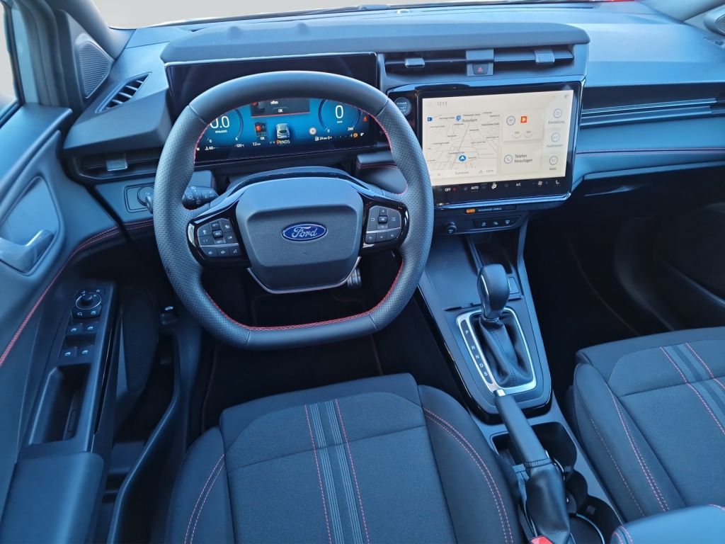 Airbags: Kopf-und Schulterairbags vorne, Ambientebeleuchtung, Armaturenbrett teilweise mit Kunstlederb, Außenspiegel beheizbar, elektrisch einst, Bereifung: 7 J x 17 LM im 5-Design, Body-Styling-Kit ST-Line / ST-Line X, Fahrspur-Assistent, Fahrwerk: Sportlich abgestimmtes Fahrwer, Falschfahrer-Warnfunktion, Fensterheber vorn und hinten elektrisch, Ford MegaBox, Ford Power-Startfunktion, Getriebe: 7-Gang-Automatik PowerShift, ISOFIX-Halterungen an der Rücksitzbank, Innenspiegel automatisch abblendend, Klimaanlage mit automatischer Temperat., LED-Scheinwerfer inkl. Scheinwerfer-Ass., Lackierung: Solar Silver Metallic, Lenkrad: Sensico in Leder-Optik, perf., Mittelkonsole vorn, Müdigkeitswarner, Navigationssystem: Ford Navigationssys., Ottopartikelfilter, Paket: Fahrerassistenz - Außenspiegel el. anklapp. mit Bodenprojektion - Park-Pilot-System v. - Pre-Collision-Assist inkl. Auffahrwarnsystem (FA) m. Fußgänger- und Fahrraderkennung, Kamera- u. Radarbasiert - Int. Geschwindigkeitsregelanlage, adaptiv (iACC) m. Tempolimit-Anzeige - Erweit. Fahrspur-Assistent inkl. Fahrspurhalte-Assistent - Erweit. Verkehrsschild-Erkennungssystem - 360-Grad-Kamera - Toter-Winkel-Assistent m. Cross Traffic Alert inkl. Notbrems-Funktion beim Rückwärts-Ausparken und Anhängererkennung [Spurwechselassistent, Totwinkel-Assistent], Paket: Winter - Frontscheibe beheizbar - Lenkrad, beheizbar - Vordersitze, individuell und variabel beheizbar, Pedalerie mit Aluminium-Auflagen, Polster: Stoff, Pre-Collision-Assist, Kamera-basiert, Radio: Ford SYNC 4 mit AppLink, 12""-Touc, Radiozubehör: 5G Modem, Rückfahrkamera, Scheibenwischer mit Regensensor, Seitenscheiben u. Heckscheibe dun.getönt, Sitz: Fahrersitz höhenverstellbar mit Le, Steckdose: 12-Volt, USB Anschlüsse, Variabler Kühlerlufteinlass, Verkehrsschild-Erkennungssystem,Vorbehaltlich Irrtümer, Änderungen und Zwischenverkauf
